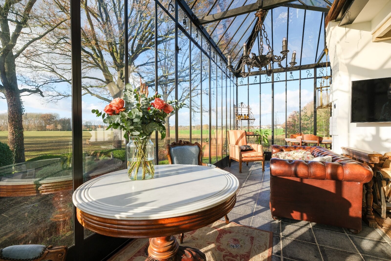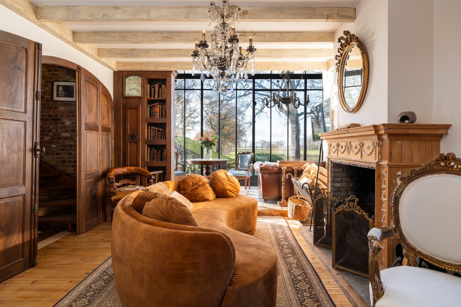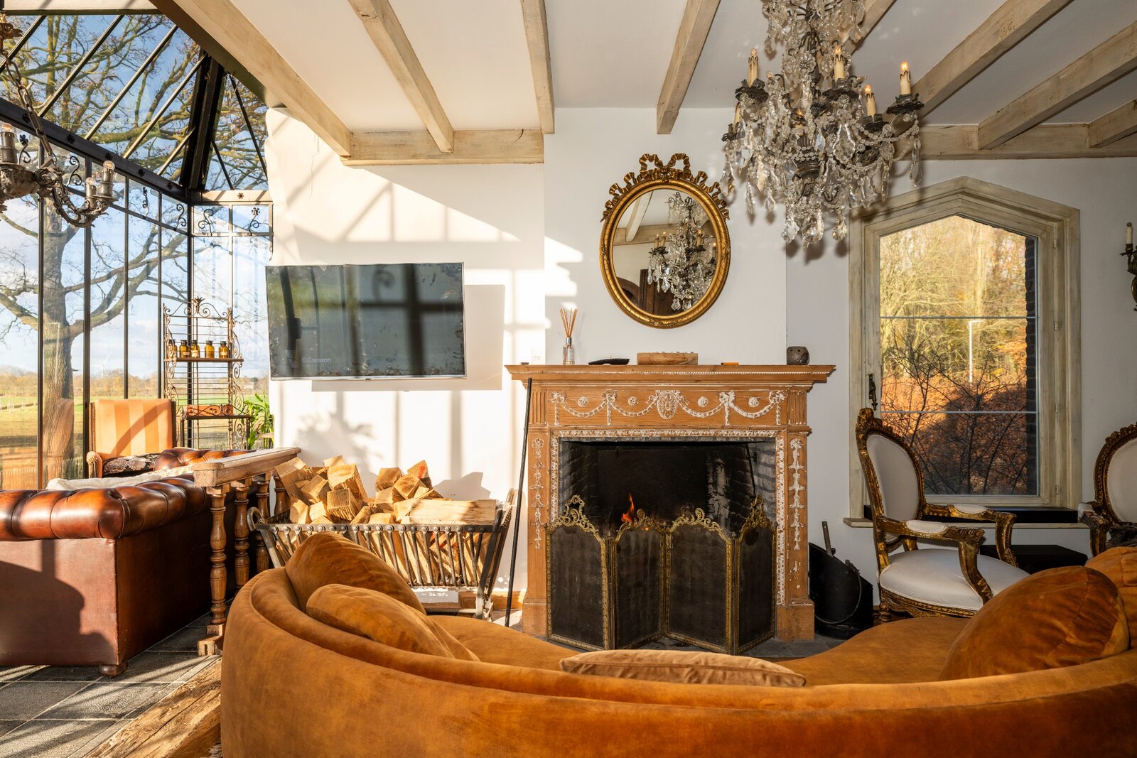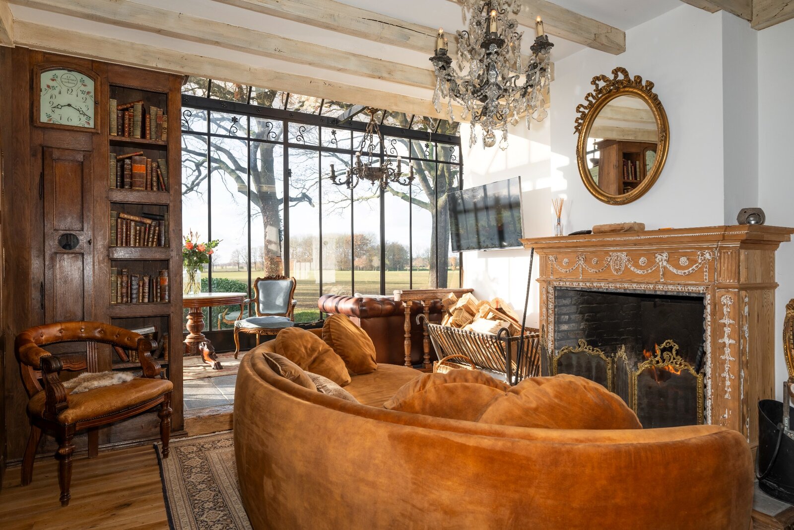 Via de centrale inkomdeur betreedt u de gezellige ontvangstruimte/zithoek. Aansluitend vindt u de sfeervolle bar die door zijn warme uitstraling perfect is voor gezellige avonden met vrienden en familie. Achter de bar bevindt zich een praktische keuken met gasfornuis, oven, afzuigkap, natuurstenen spoelbak en voldoende opbergruimte. Aan de achterzijde van de woning vindt u de charmante woonkamer, voorzien van een open haard, en de recent aangebouwde orangerie (2023). Dankzij de grote raampartijen van de orangerie geniet u niet alleen van een prachtig uitzicht over de omliggende velden, maar ook van aangenaam veel lichtinval.