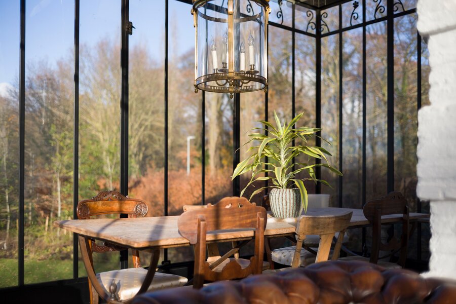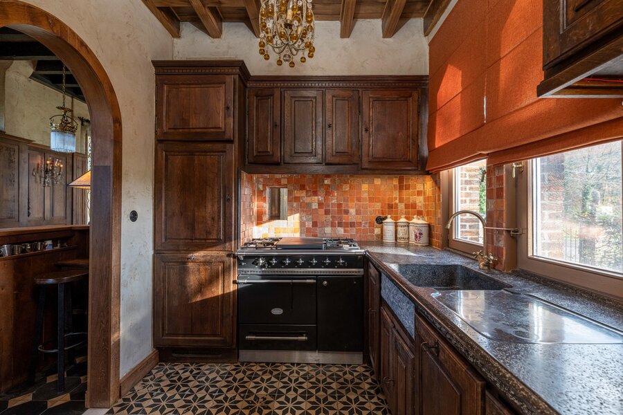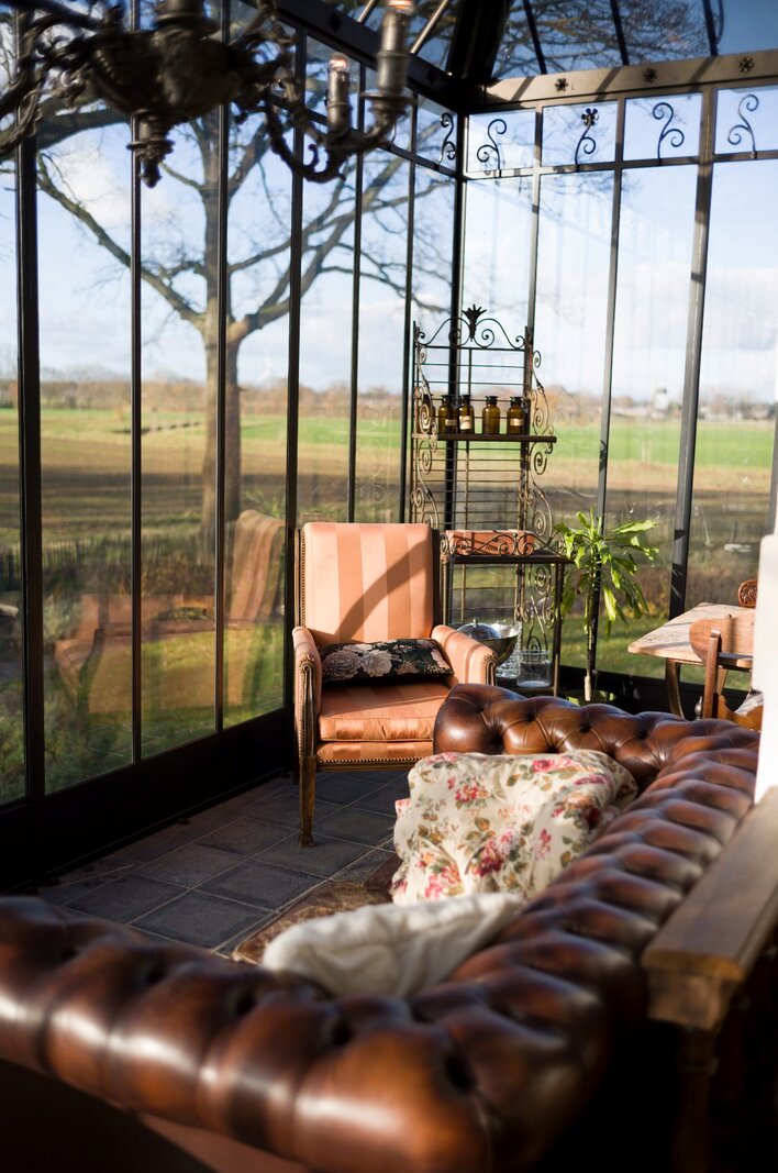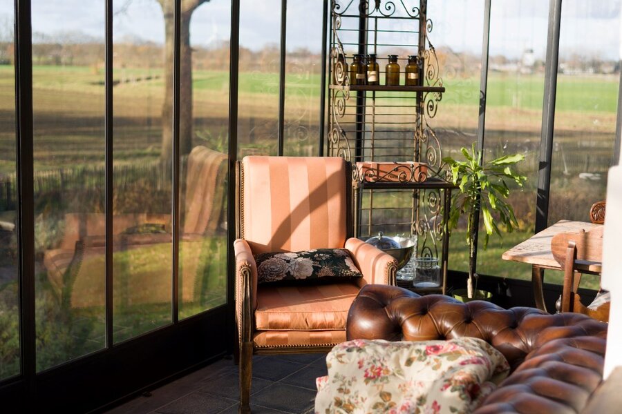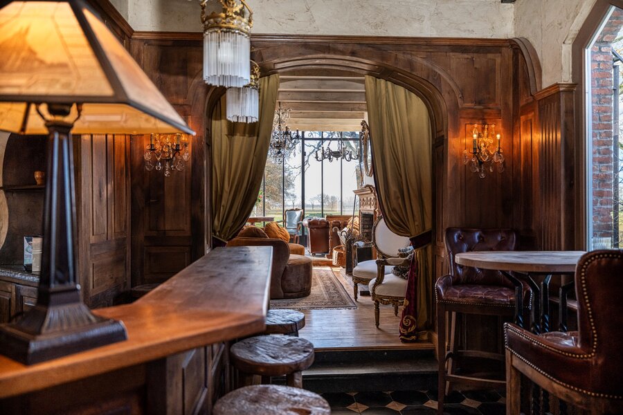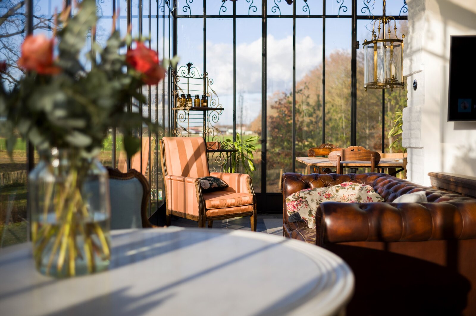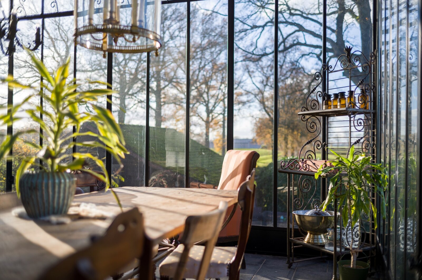 Via de centrale inkomdeur betreedt u de gezellige ontvangstruimte/zithoek. Aansluitend vindt u de sfeervolle bar die door zijn warme uitstraling perfect is voor gezellige avonden met vrienden en familie. Achter de bar bevindt zich een praktische keuken met gasfornuis, oven, afzuigkap, natuurstenen spoelbak en voldoende opbergruimte. Aan de achterzijde van de woning vindt u de charmante woonkamer, voorzien van een open haard, en de recent aangebouwde orangerie (2023). Dankzij de grote raampartijen van de orangerie geniet u niet alleen van een prachtig uitzicht over de omliggende velden, maar ook van aangenaam veel lichtinval.