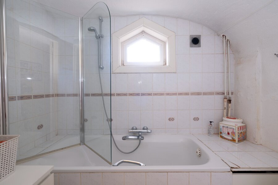 Op de eerste verdieping heeft u toegang tot twee slaapkamers en de wasplaats met toilet, enkele wastafel en aansluiting voor wasmachine en droogkast. Daarnaast beschikt de woning over een kleine bergzolder voor extra opbergruimte.