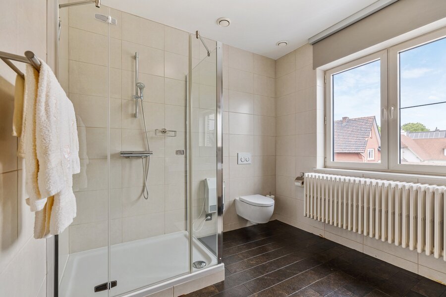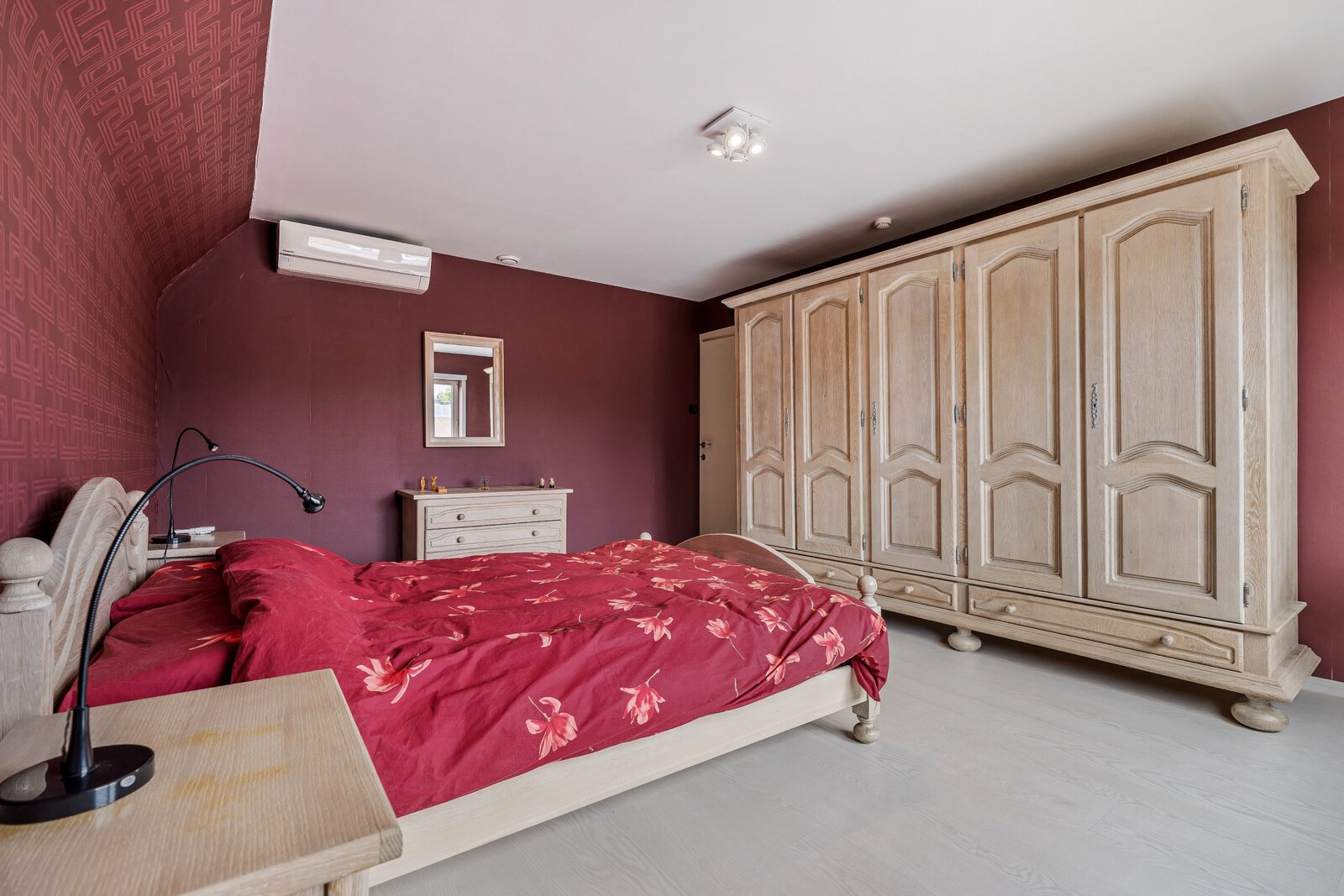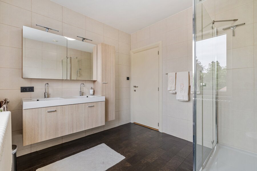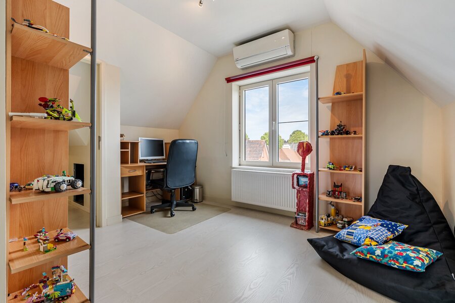 Op de verdieping is een 2e badkamer met 4 zeer ruime slaapkamers, allen voorzien van airco. De zolder/ 2 de verdieping is momenteel ingericht als 6e slaapkamer met dressing.