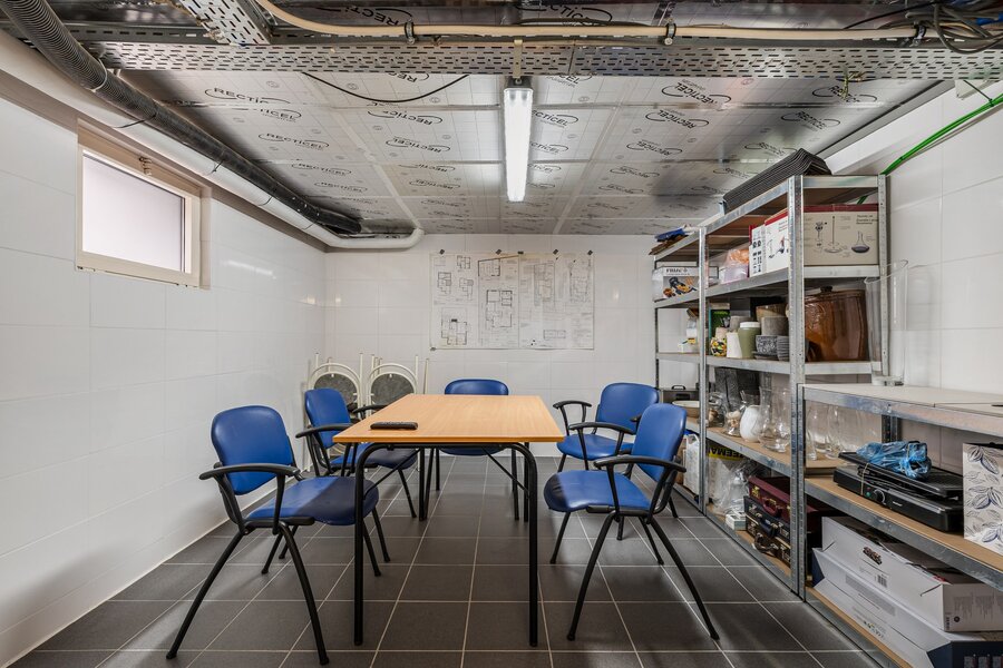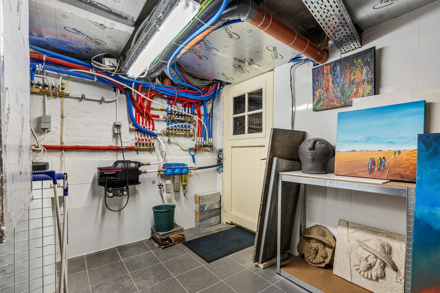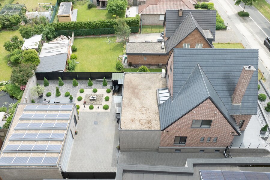 Ideale bereikbaarheid met de mogelijkheid tot beroep aan huis. Gelegen op een onderhoudsvriendelijk perceel van 771m2. Deze is volledig omheind en voorzien van een uitgebreid alarmsysteem met camera’s. De oprit geeft toegang tot de dubbele garage met atelier/werkruimte. Hier heeft men ook een noodsysteem met generator geïnstalleerd. De tuin is volledig aangelegd, het terras is voorzien van een zonneluifel en windscherm. De woning zelf is volledig gerenoveerd in 2013, met het oog op de toekomst. De leefruimtes worden momenteel verwarmd met de speksteenkachel, er is ook CV op aardgas via de radiatoren, tijdens de verbouwing is er ook een ventilatiesysteem geïnstalleerd.