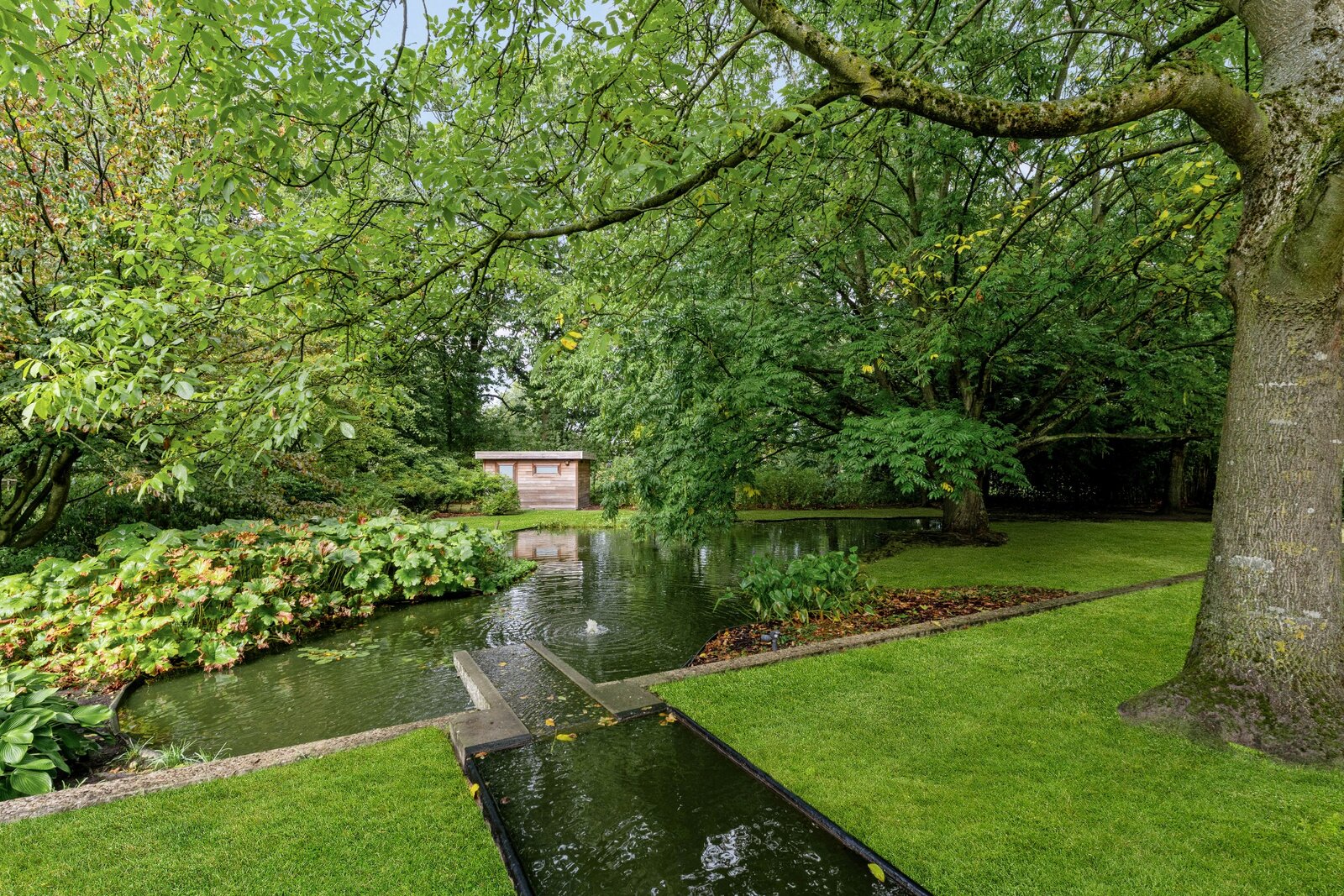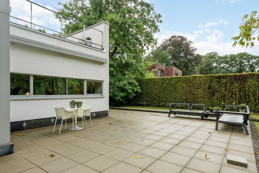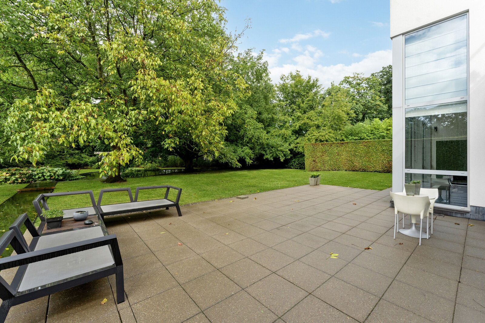 Ook buiten vindt u alle comfort terug door terug door de verscheidene terrassen waardoor het altijd ergens aangenaam vertoeven is op deze eigendom. De tuin is eveneens voorzien van een prachtige vijver en volwassen bomen die zorgen voor een natuurlijke airco.