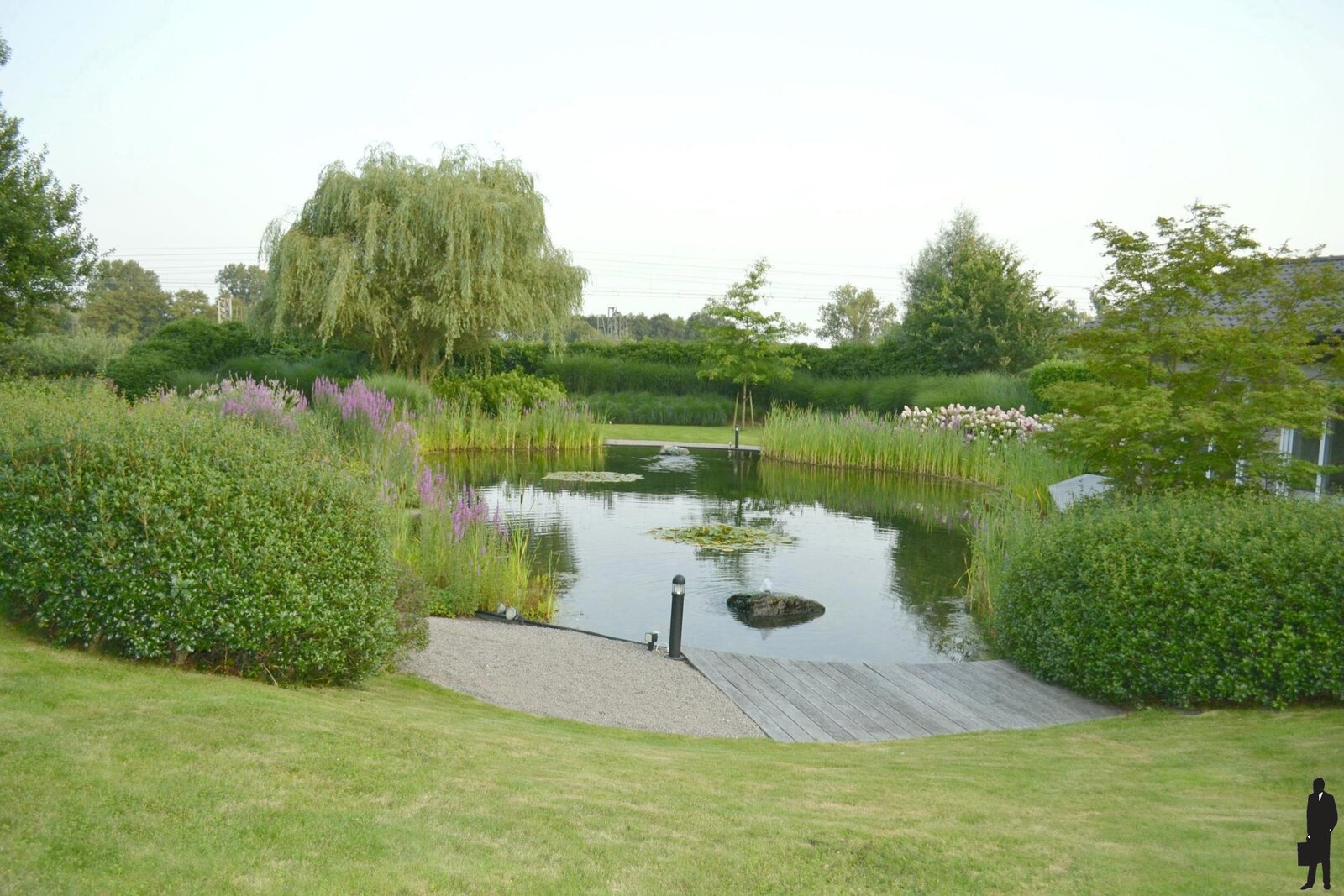 Zuidgerichte, volledig heraangelegde tuin (2016) met zelfreinigende zwemvijver