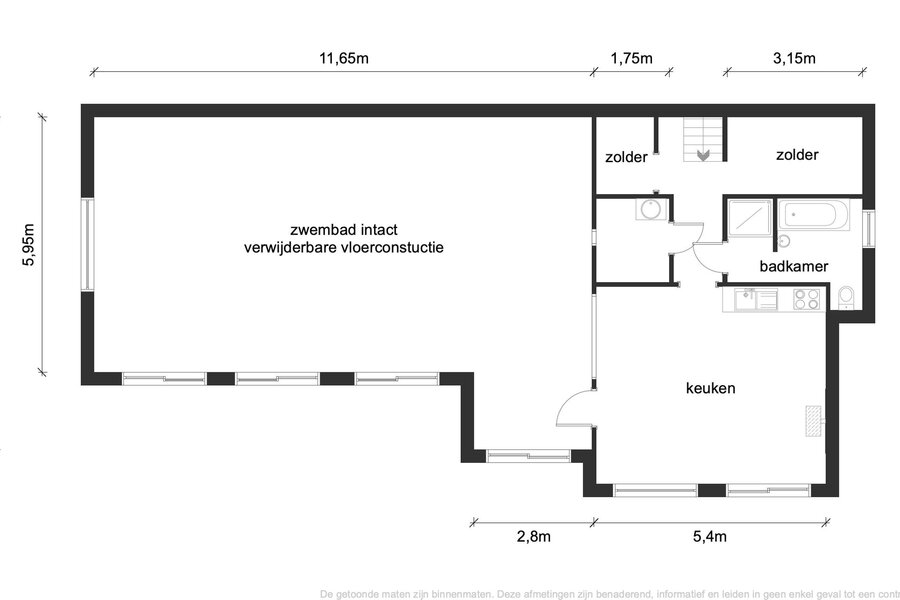 Inactief betonnen binnenzwembad in mozaïektegels (voorzien van verwijderbare vloerconstructie)