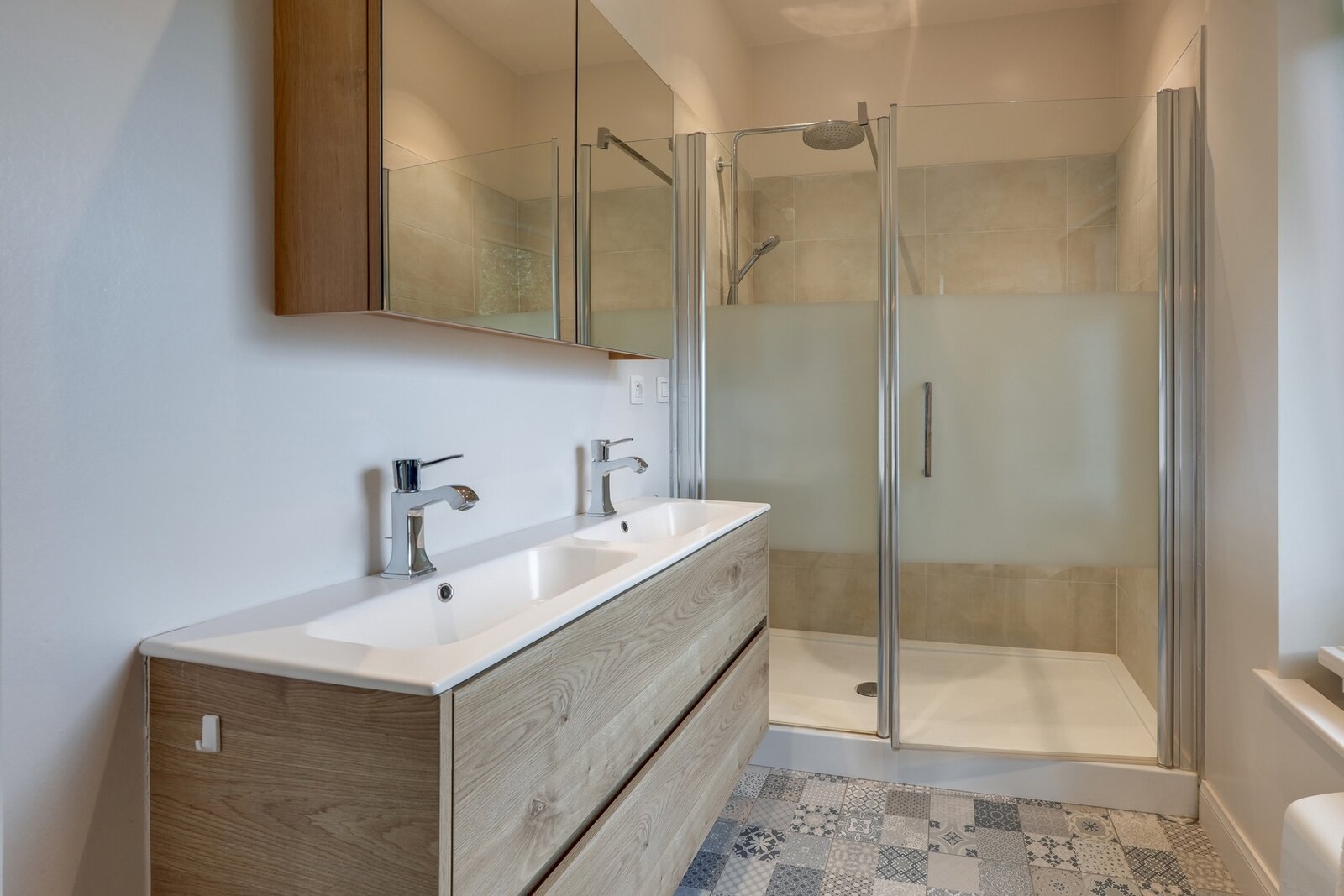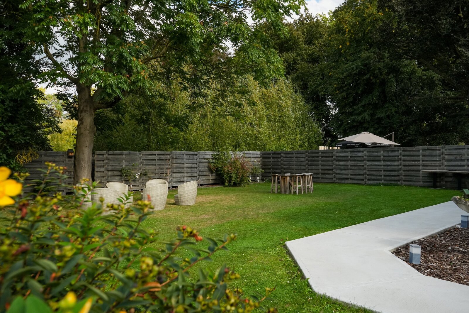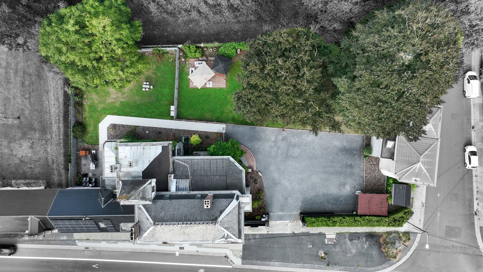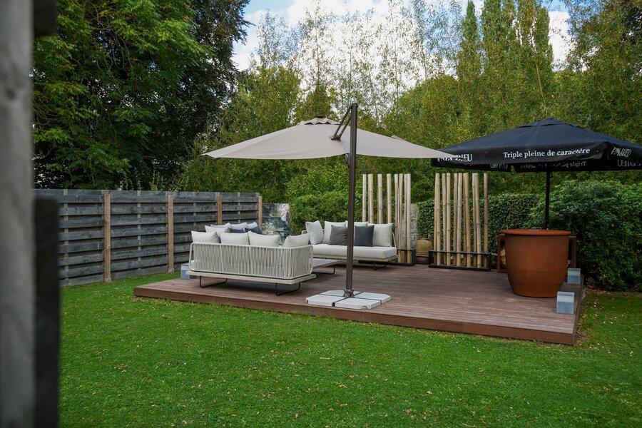 Outdoors: Landscaped and fenced garden, 2 furnished terraces, century-old tree, private parking, motorized gate with charging stations for electric vehicles.