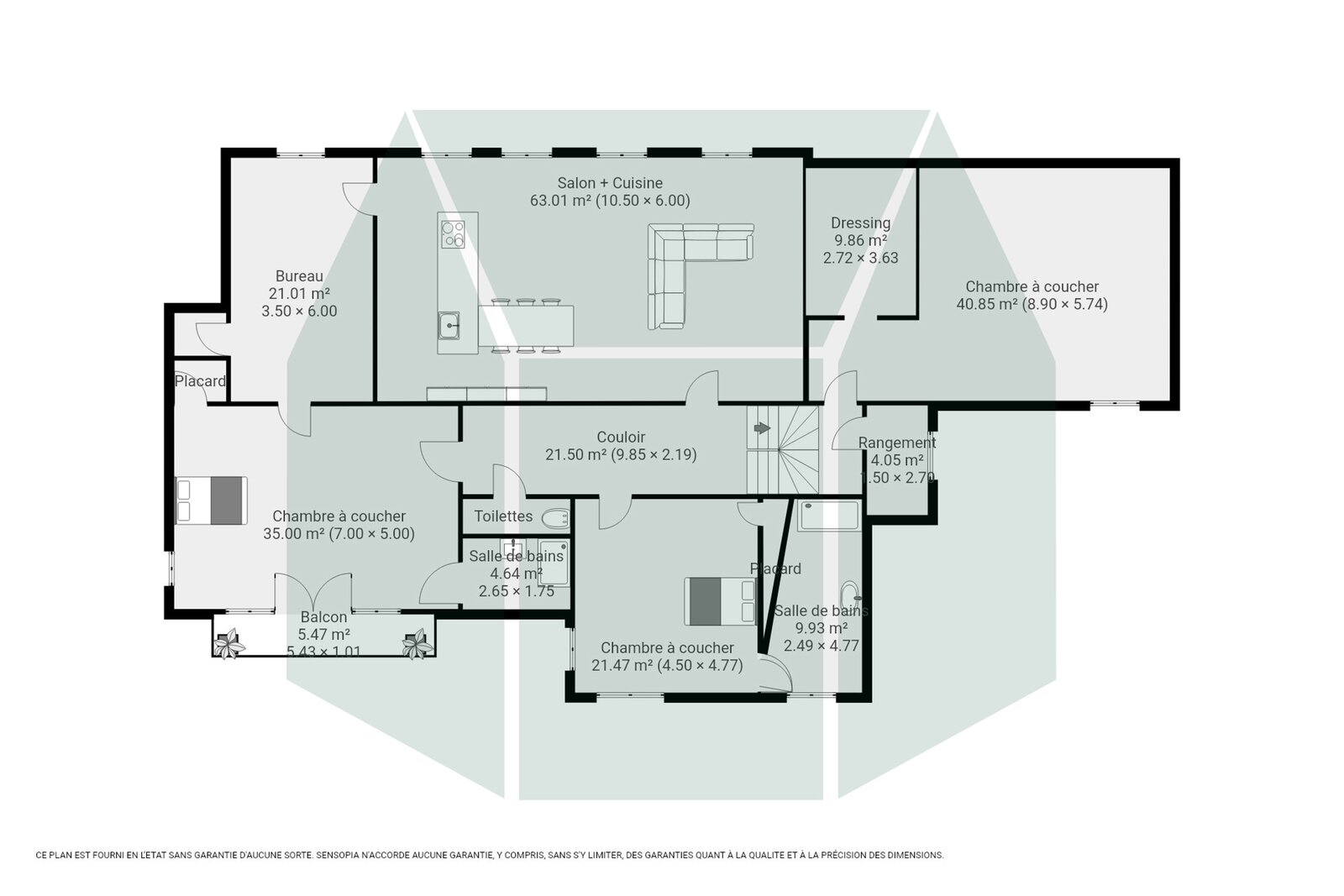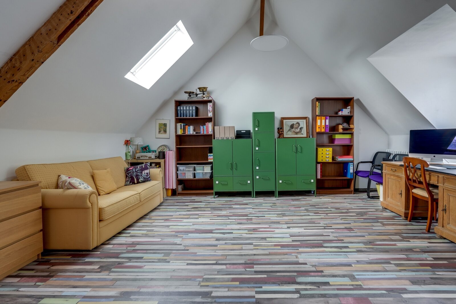 The second floor, fitted out in 2021, features a night hall with lounge area, two bedrooms, and a shower room.