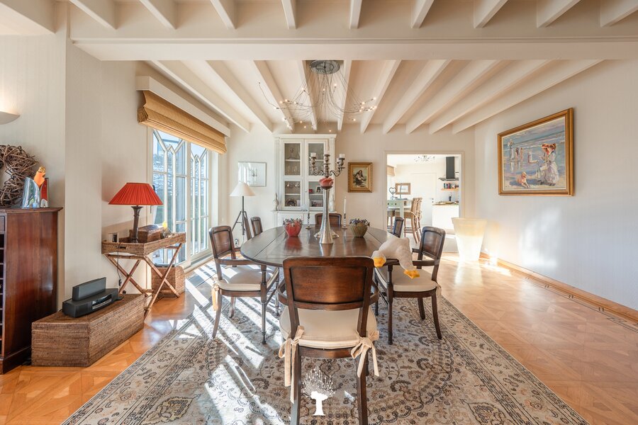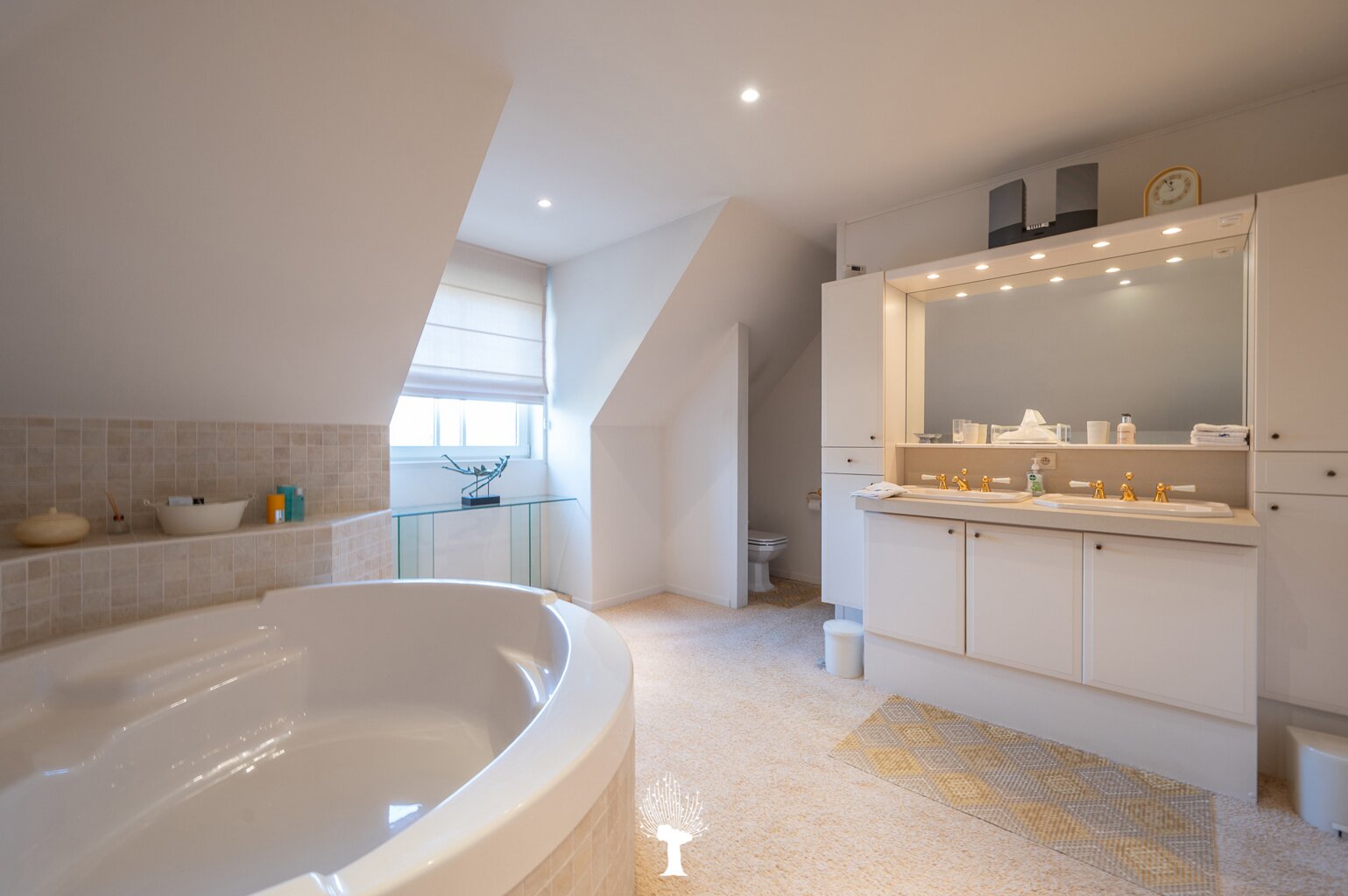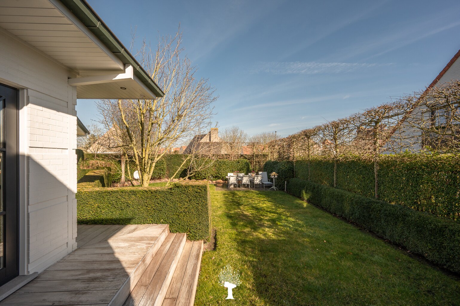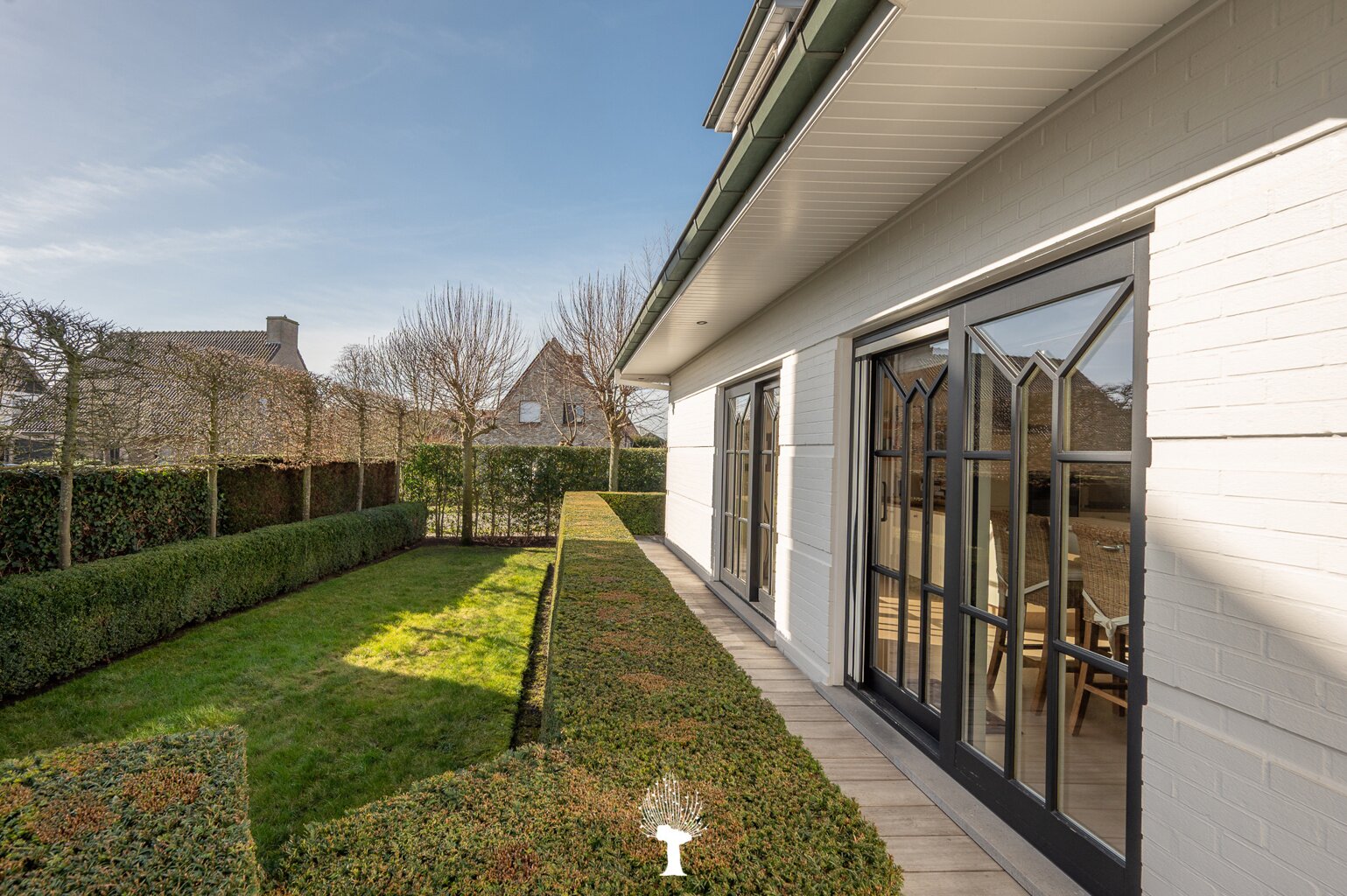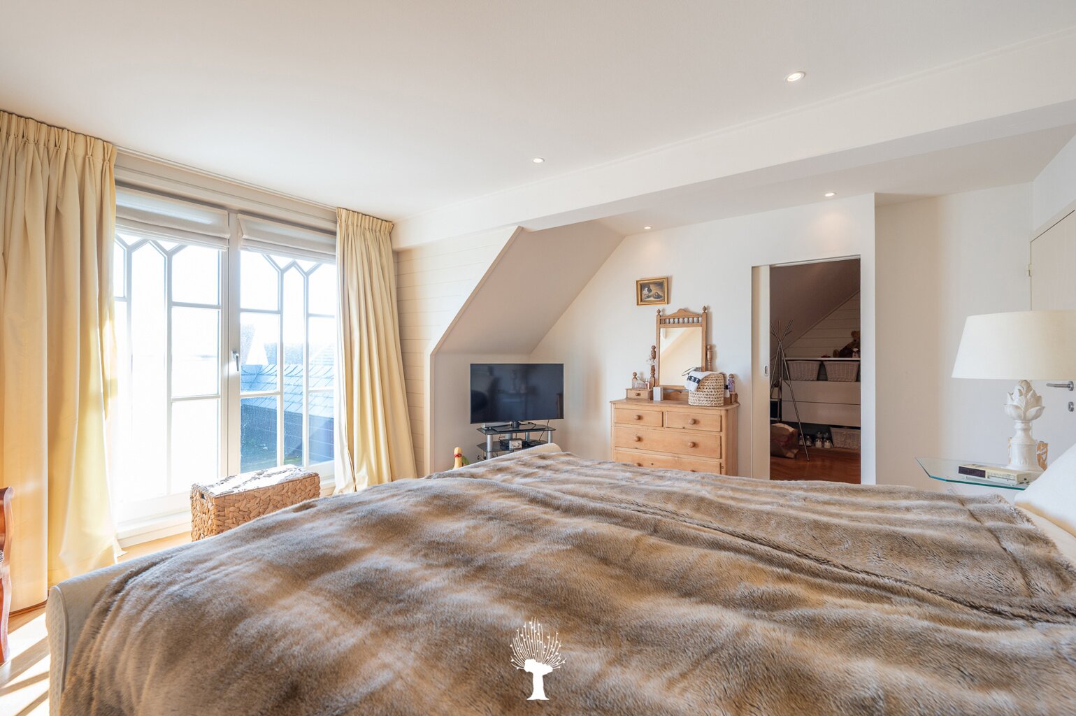 Aangename alleenstaande villa , fraai gelegen in een rustige villawijk aan de rand van het Zoute, op loopafstand van vele winkels. Samenstelling : Royale inkomhall met vestiaire en toilet. Apart bureel. Ruime woonkamer met gashaard. Eetkamer. Ingerichte keuken voorzien van alle moderne huishoudapparaten en gezellige eethoek, alles uitgevend op het terras en de tuin. Bijkeuken/wasplaats. Op de 1ste verdieping : 2 zéér ruime slaapkamers met veel lichtinval. Praktische douchekamer met 2 wastafels. Master bedroom met dressing en privatief terras. Badkamer met ligbad, dubbele lavabo, douche en toilet. Ruime zolder. Garage voor 2 wagens. Meerdere staanplaatsen voor de villa. Zeer degelijke afwerking. Bezoek gaarne na afspraak in één van onze kantoren.