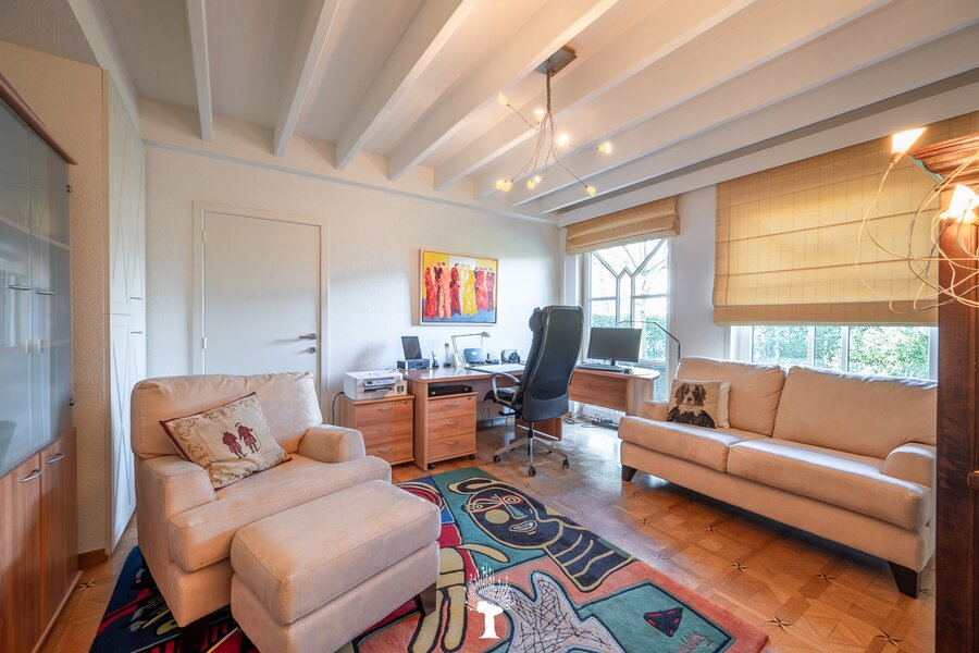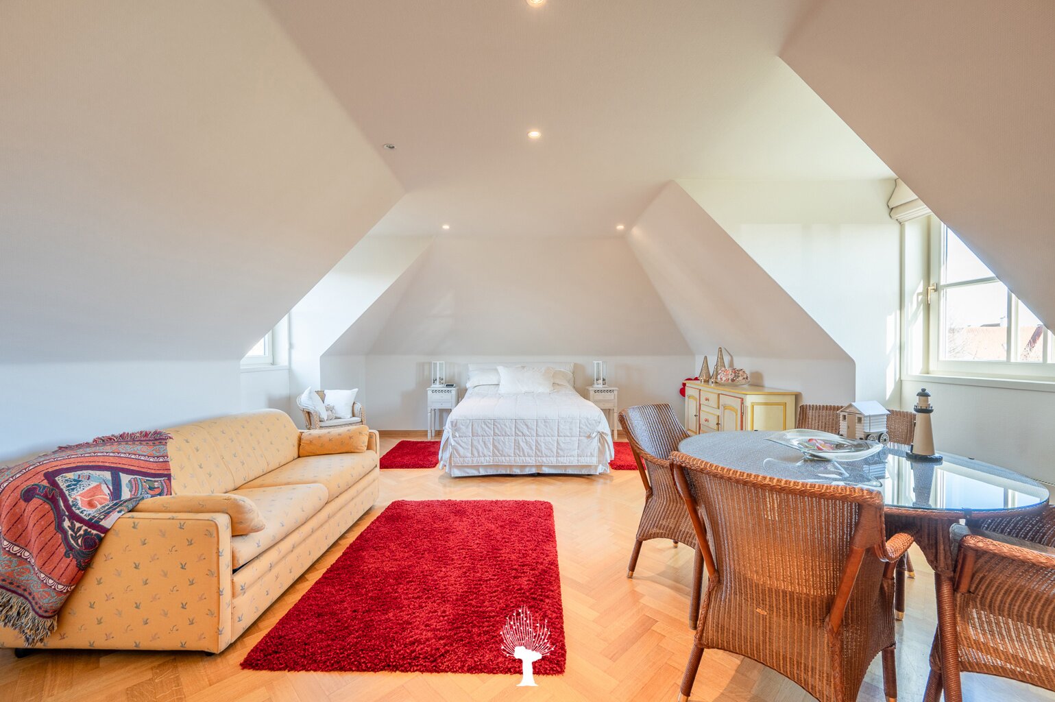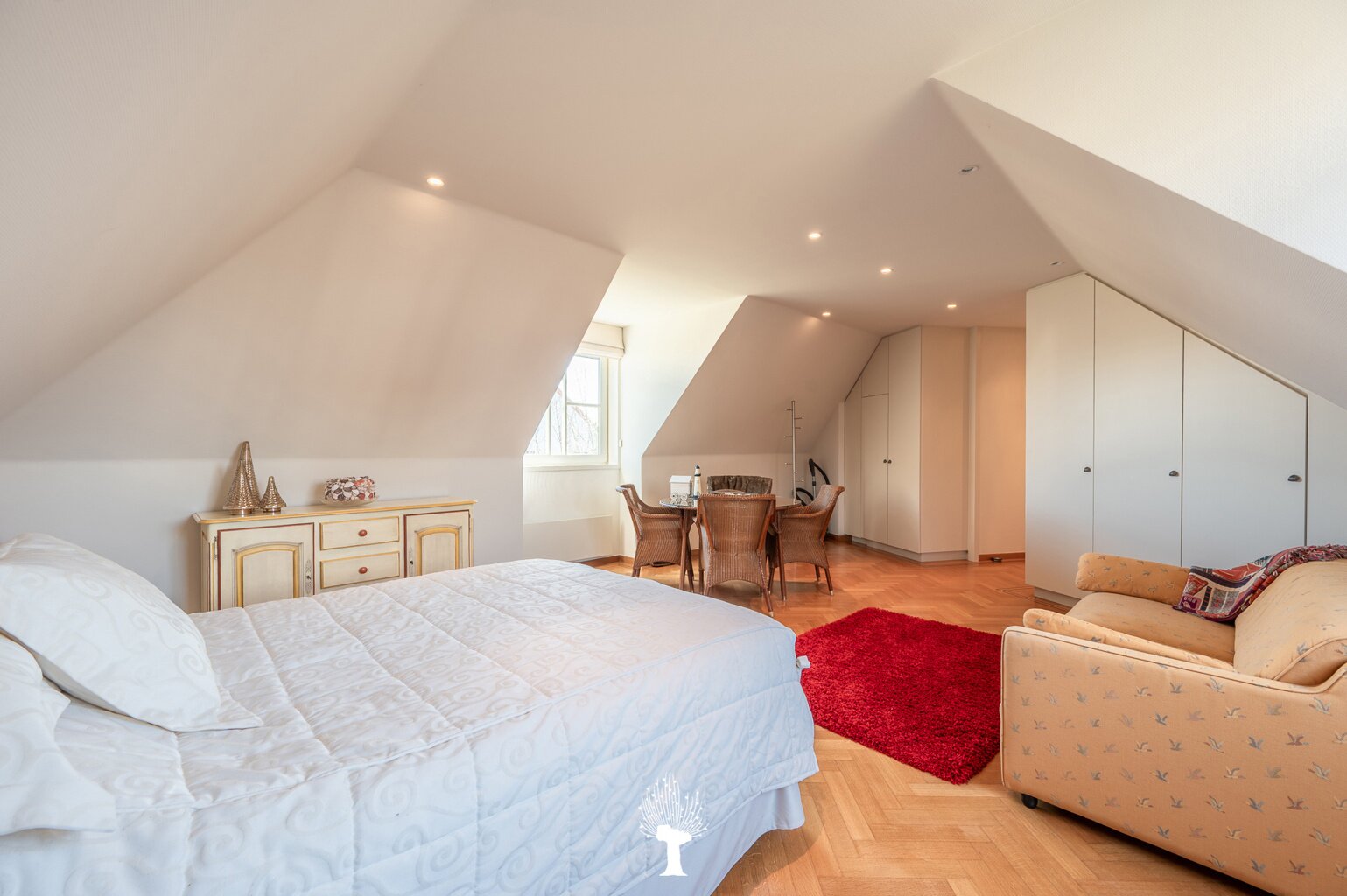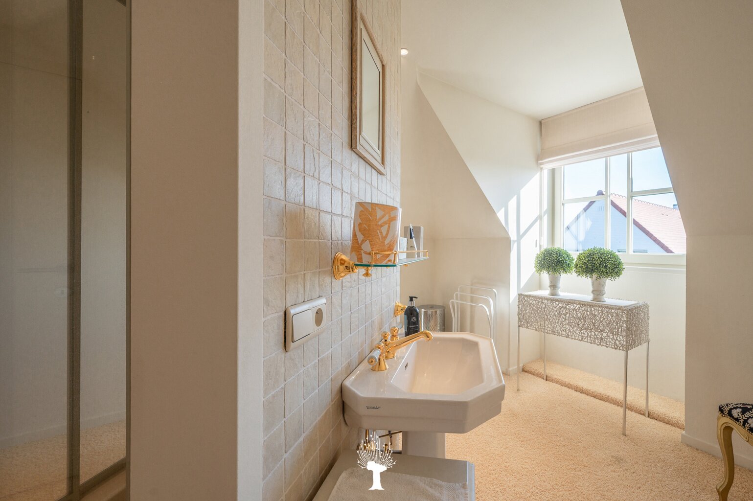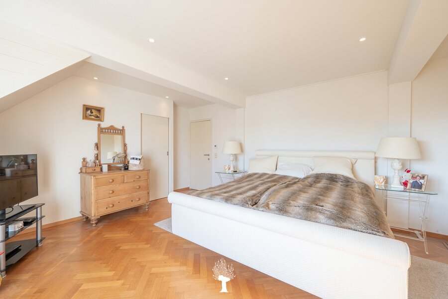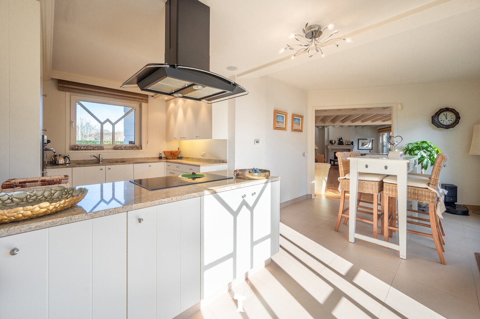 Aangename alleenstaande villa , fraai gelegen in een rustige villawijk aan de rand van het Zoute, op loopafstand van vele winkels. Samenstelling : Royale inkomhall met vestiaire en toilet. Apart bureel. Ruime woonkamer met gashaard. Eetkamer. Ingerichte keuken voorzien van alle moderne huishoudapparaten en gezellige eethoek, alles uitgevend op het terras en de tuin. Bijkeuken/wasplaats. Op de 1ste verdieping : 2 zéér ruime slaapkamers met veel lichtinval. Praktische douchekamer met 2 wastafels. Master bedroom met dressing en privatief terras. Badkamer met ligbad, dubbele lavabo, douche en toilet. Ruime zolder. Garage voor 2 wagens. Meerdere staanplaatsen voor de villa. Zeer degelijke afwerking. Bezoek gaarne na afspraak in één van onze kantoren.