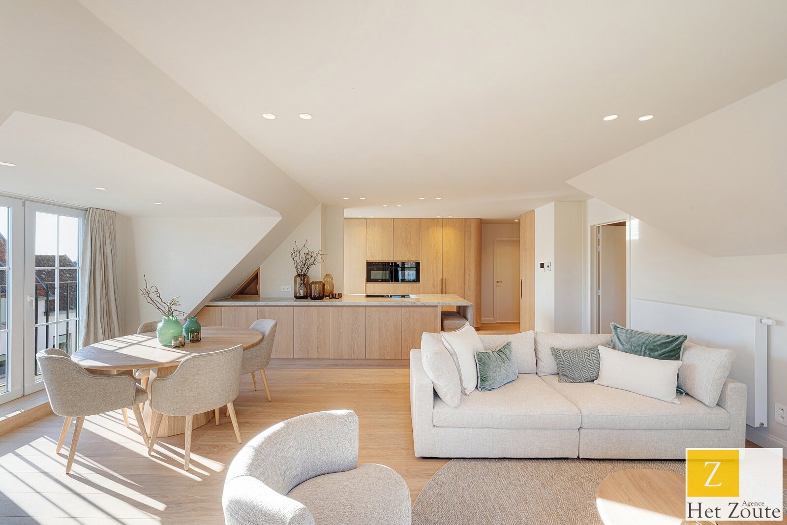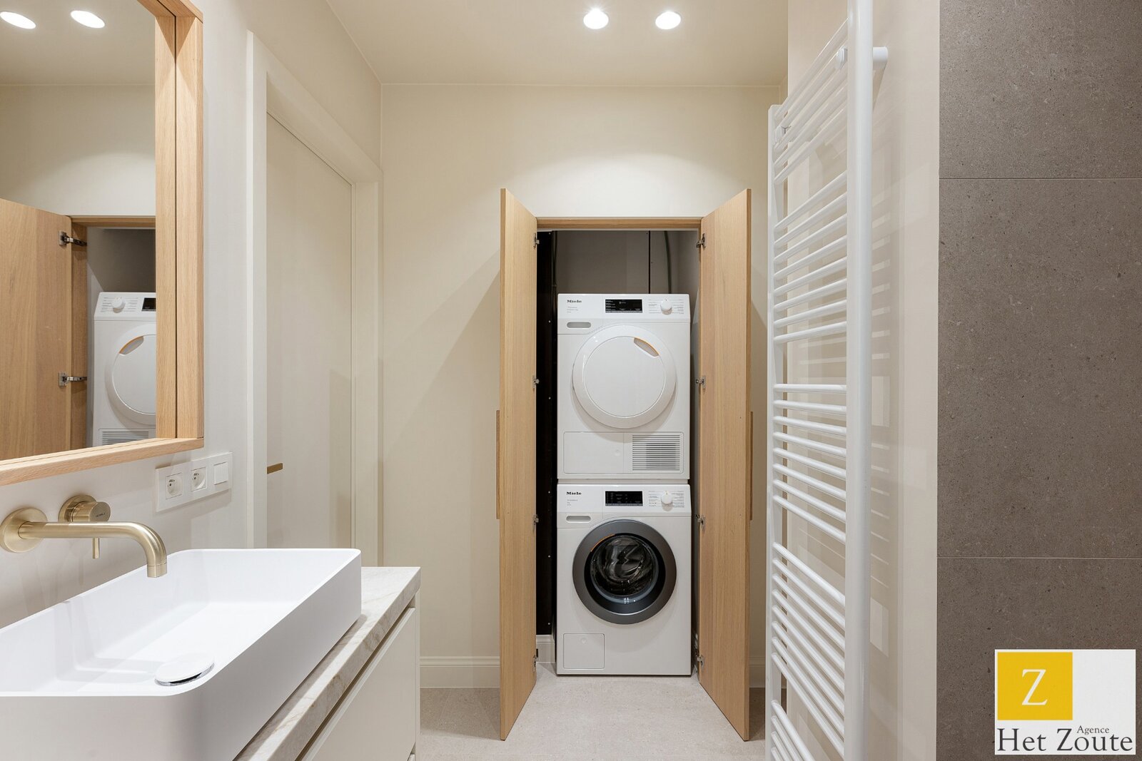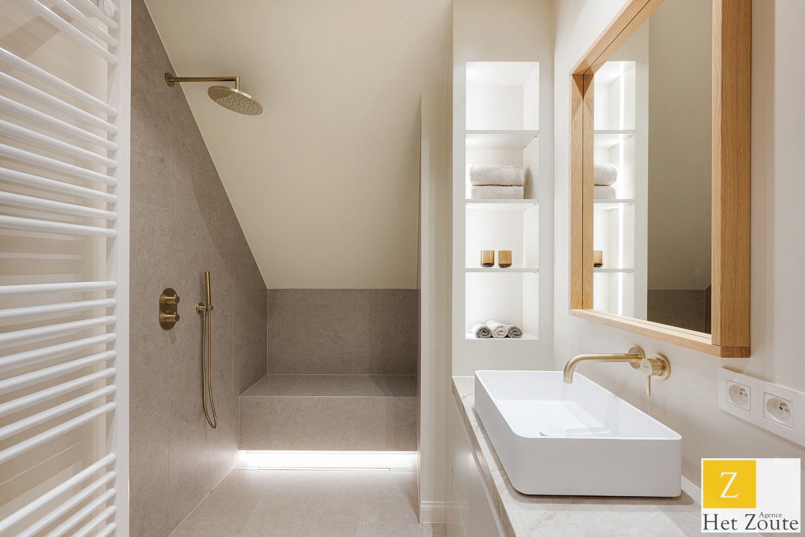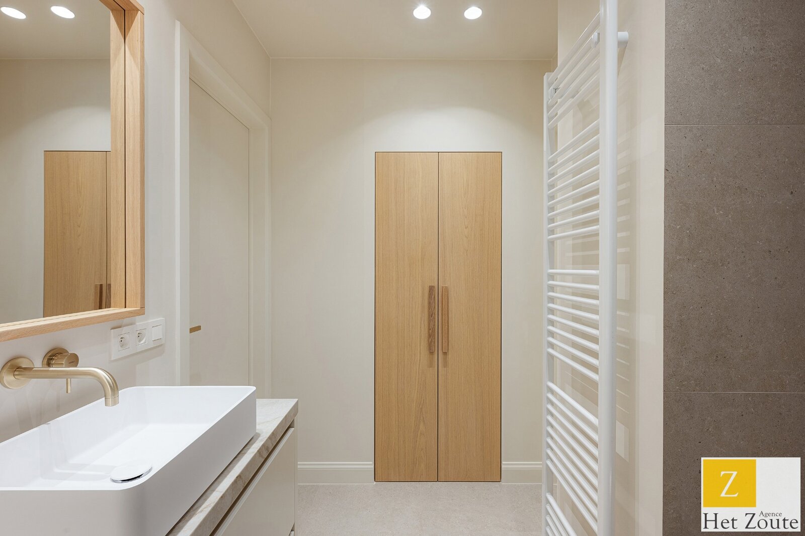 Het appartement werd volledig vernieuwd met hoogwaardige materialen en een verfijnde afwerking. De inrichting is bijzonder praktisch, met aandacht voor functionaliteit en gezelligheid. De open keuken sluit naadloos aan op de lichtrijke woonkamer en vormt het hart van de leefruimte, dankzij de grote raampartijen dat het prachtige uitzicht maximaal tot zijn recht laat komen.