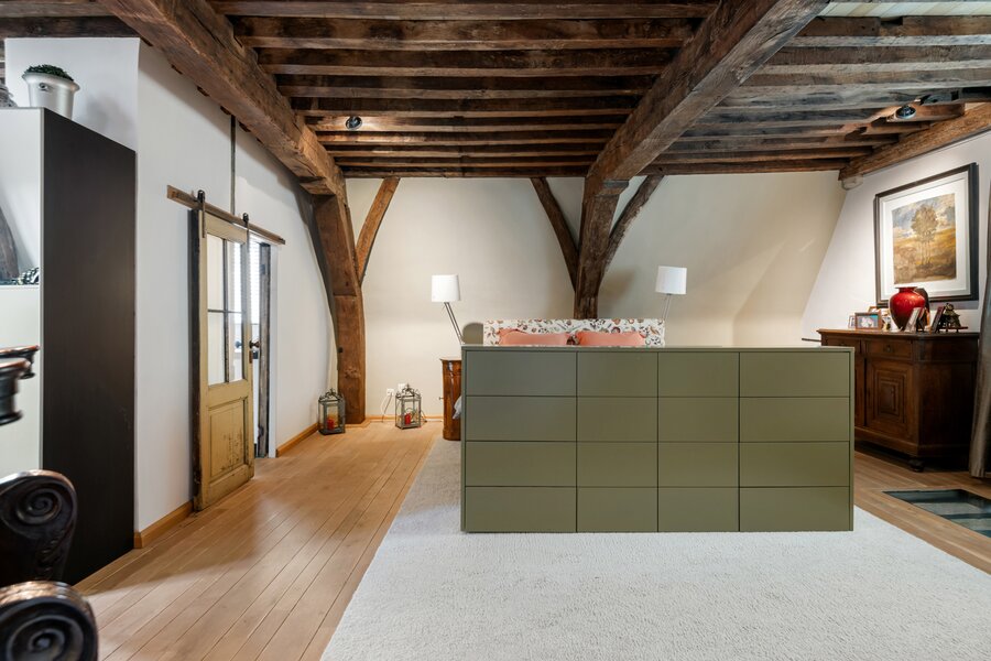 In the heart of Antwerp, on the corner of the Koolkaai, is this exceptional property: a late Gothic townhouse from the last quarter of the 15th century, known as "Groote Schalien Loove". This protected heritage site has been renovated with utmost care and craftsmanship, resulting in an impressive blend of contemporary living comfort and historical character.