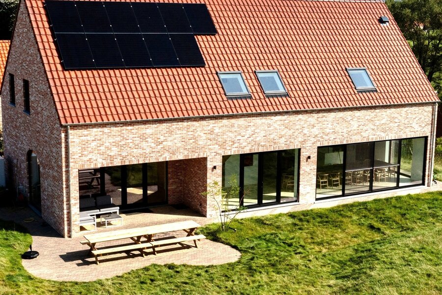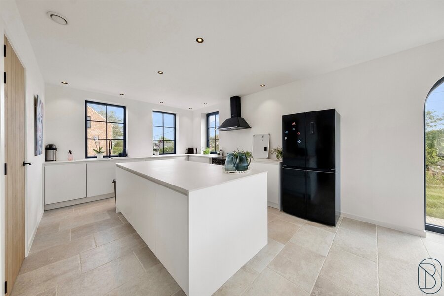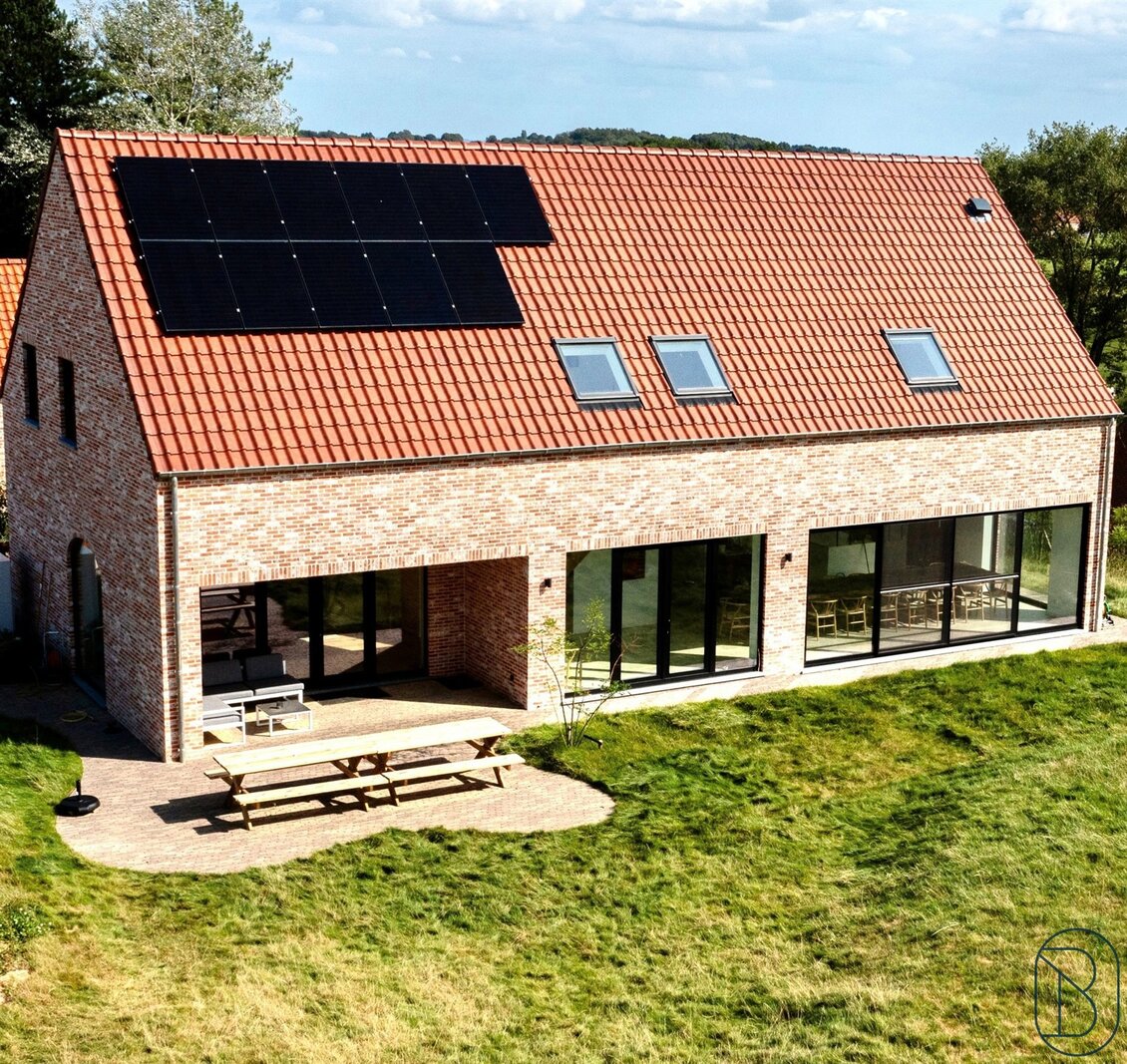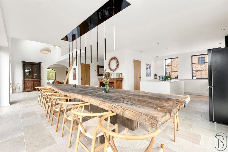 Beautifully located recent energy efficient VILLA with 6 SLK, 4 bathrooms, beautifully landscaped driveway and large GARDEN. Finished with MOOIE solid MATERIALS. Ideal B&B. +21% VAT. DESCRIPTION: entrance, separate toilet, a first bedroom / office (with bathroom), large bright living room (beautiful view of greenery and garden, large sliding window, parquet oak), fitted kitchen with island, nice cozy sitting area, covered TERRACE, beautiful driveway and large garden. The first floor is accessed by a quality staircase, nice loft and night hall, 5 bedrooms (parquet), 3 bathrooms, toilet. TROEVEN: SUN PANELS and HEAT PUMP, quality materials, large rooms, beautiful location. WORTH YOUR VISIT! Visit by appointment with IMMO BEGUIN: info@immobeguin.be