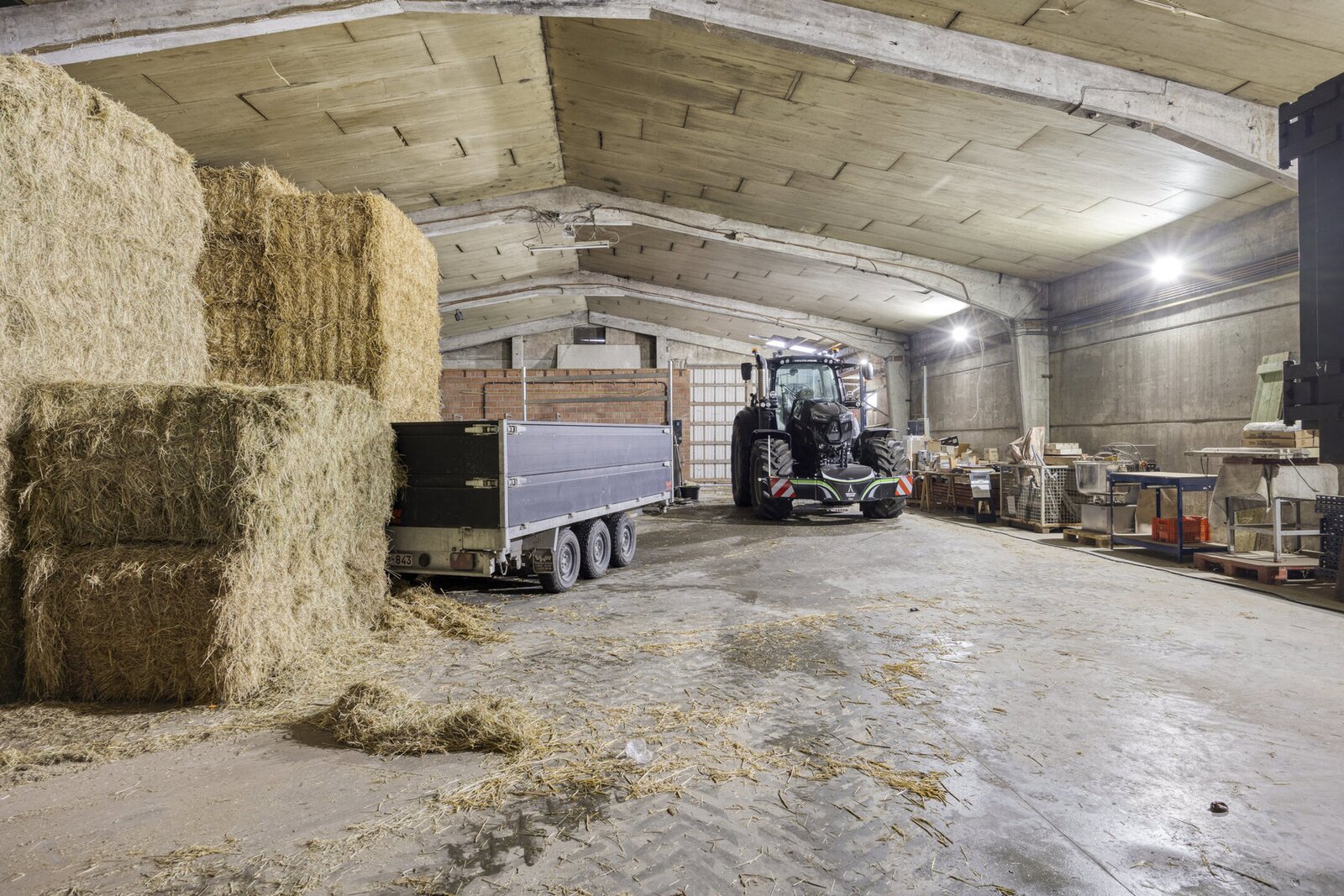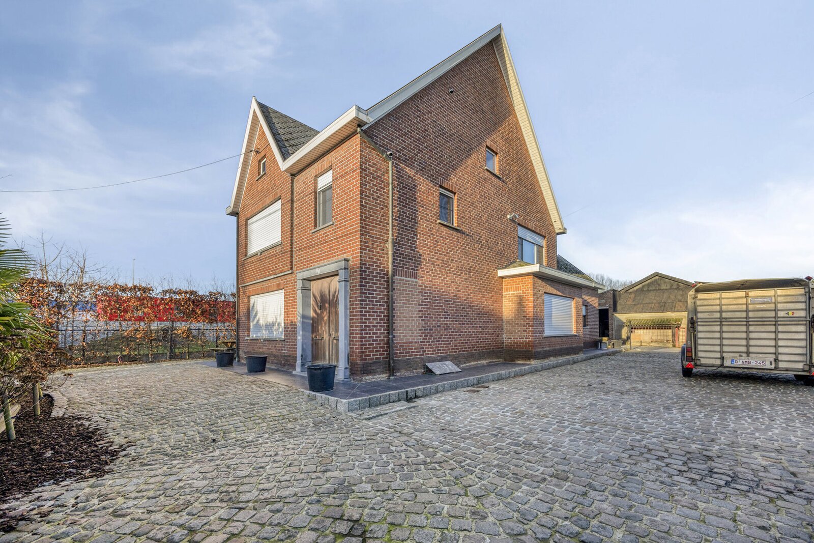 Een grote oprit biedt ruime parkeermogelijkheden voor meerdere wagens of voertuigen. Dit pand is ideaal voor wie wonen wil combineren met professionele, agrarische of opslagactiviteiten.