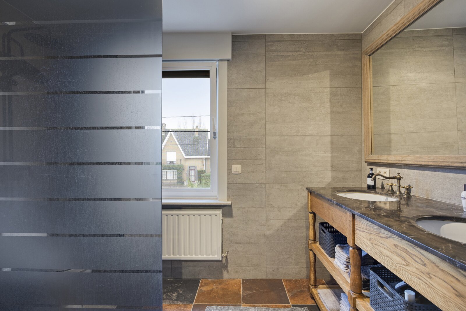 - Gelijkvloers: ruime woonkamer, keuken, berging, inkomhal en apart toilet.