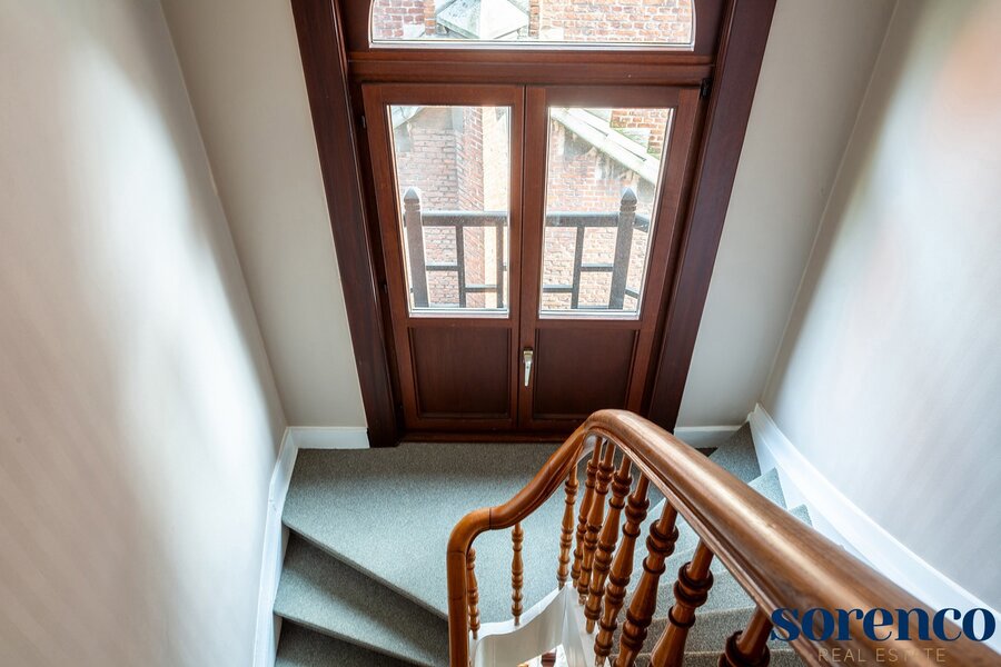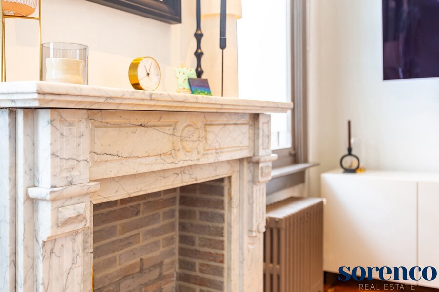 Tal van authentieke elementen zoals parketvloeren, mozaïek vloeren, originele schouwen en hoge plafonds.