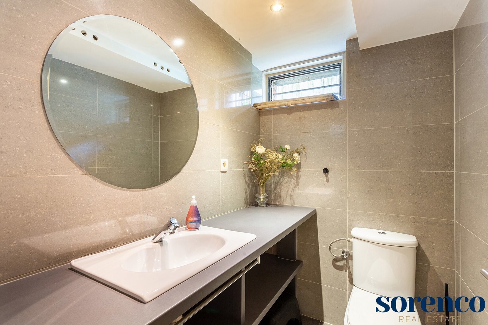 Ingerichte SOUTERRAIN met polyvalente ruimte/bureau, ideaal als thuiskantoor, hobbyruimte of ontspanningsruimte ca. 15m². Verder is er nog een apart toilet, een berging, een wasplaats, hal met ingebouwde kasten, en een technische ruimte/stookruimte. Deze verdieping geeft ook toegang tot de tuin.