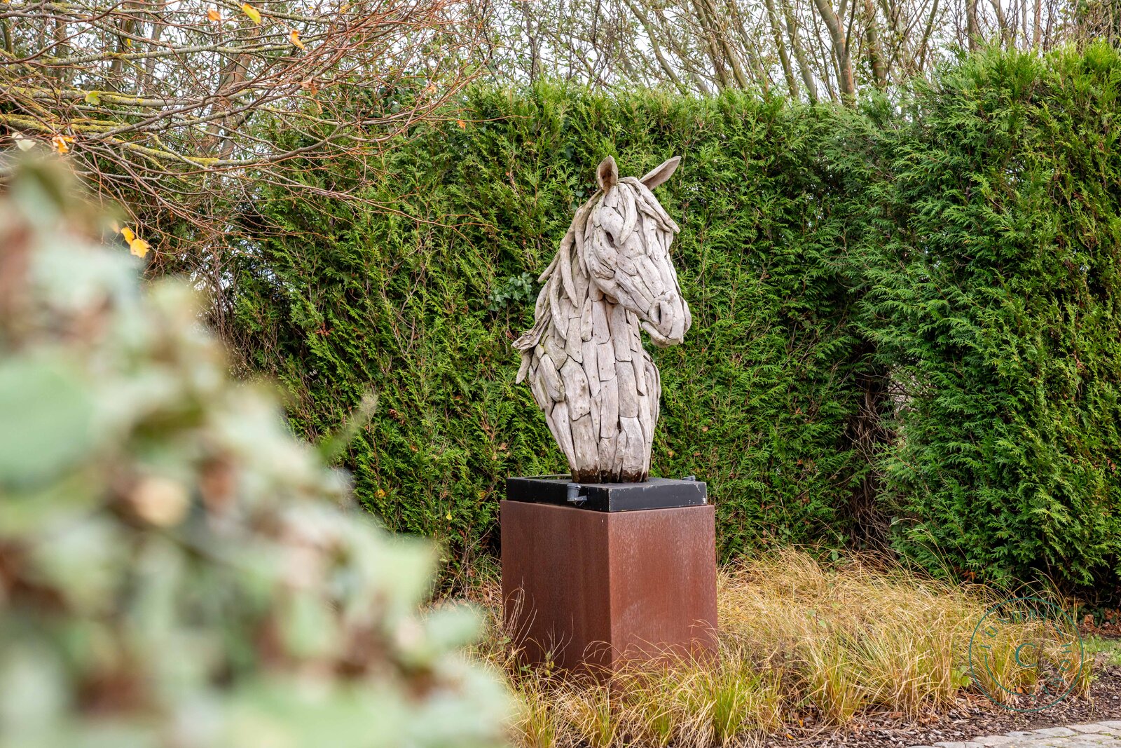 Het domein beschikt daarnaast over een weide van 3.500 m² met twee inpandige paardenboxen en bijhorende berging. Verder vind je een dubbele garage met plaats voor vier wagens, uitbreidbaar naar vijf dankzij een parkeerbrug, en een praktisch tuinhuis.