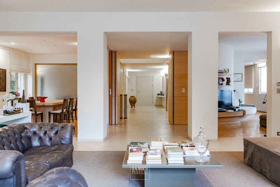 Designed by architect Claire Bataille, it stands out for its exceptional volumes, bespoke furniture, and high-quality finishes. Its living programme, which can be reconfigured thanks to large sliding doors, meets the expectations of a demanding clientele, including art collectors and those who value generous spaces.