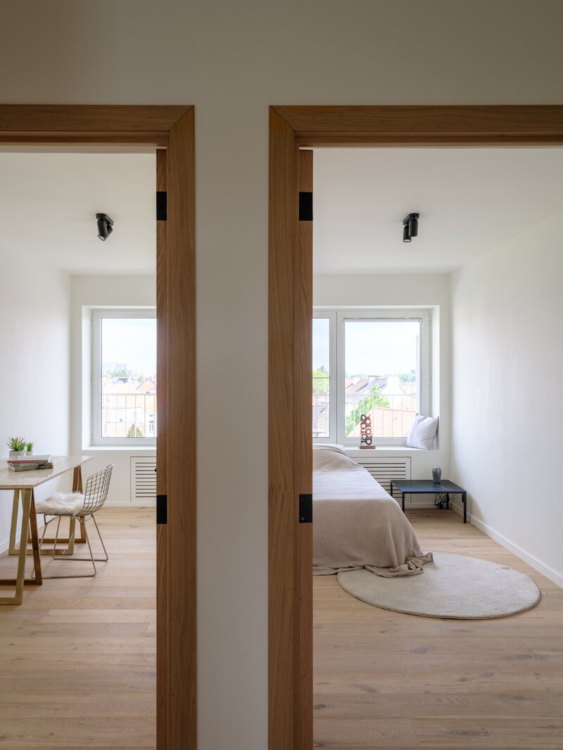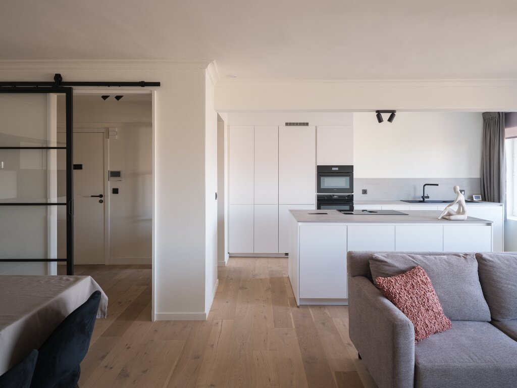 The 3-bedroom apartment was fully renovated in 2021, featuring a total renovation with stylish and timeless accents. Black steel interior doors, wooden floors, large windows, and open volumes set the tone. The apartment has a surface area of 120 m² and offers a highly functional layout. The large windows, open spaces, and spacious entrance hall create a feeling of openness throughout the apartment.