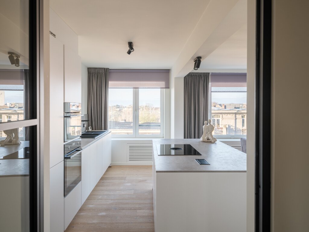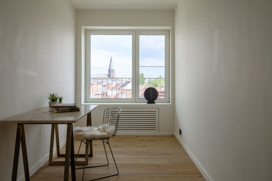 This apartment, located on the 5th floor, stands out for its generous sense of space, practical layout, and high-quality finishes. An additional asset is its proximity to Ghent-Sint-Pieters station, with the Citadel Park within walking distance.