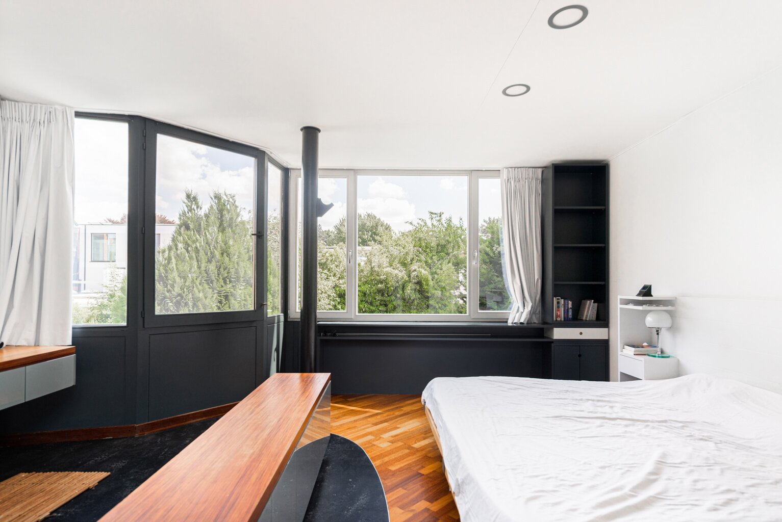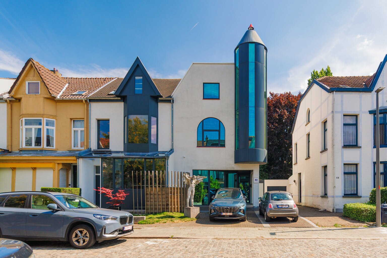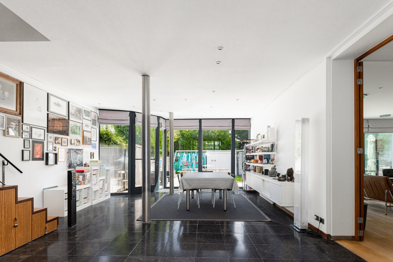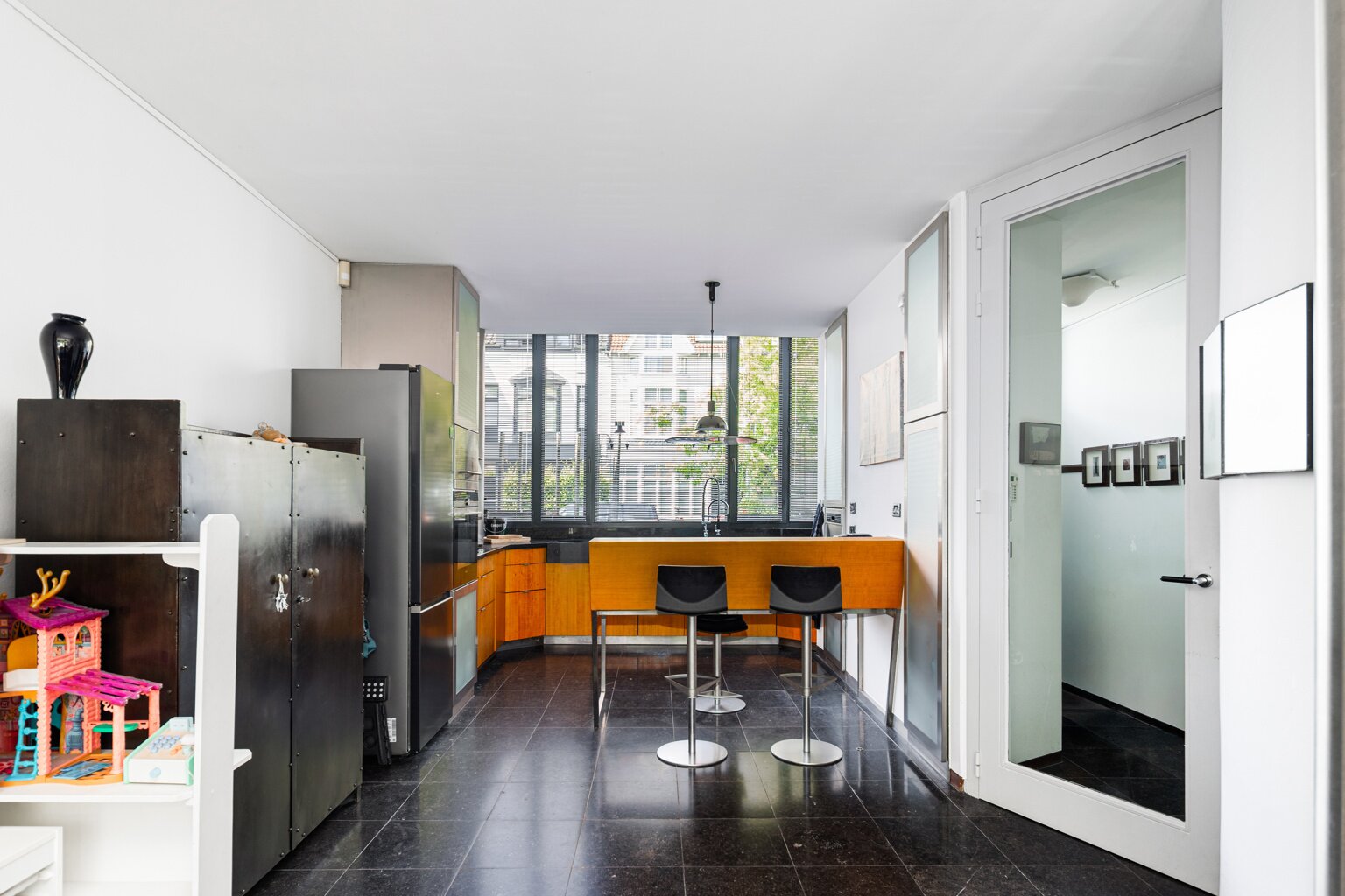 In 1988, the current owners bought the house at no. 64, and six years later they also acquired the neighbouring house, no. 66. With ingenious connections and openings between the two buildings, they transformed their family home into an XL version, with abundant space to combine family life with hobbies and professional activities. A large part of the property is used as the office for the owner’s architecture practice. This immediately explains the playful nod in this home: the pencil-shaped tower, a fun reference to his profession.