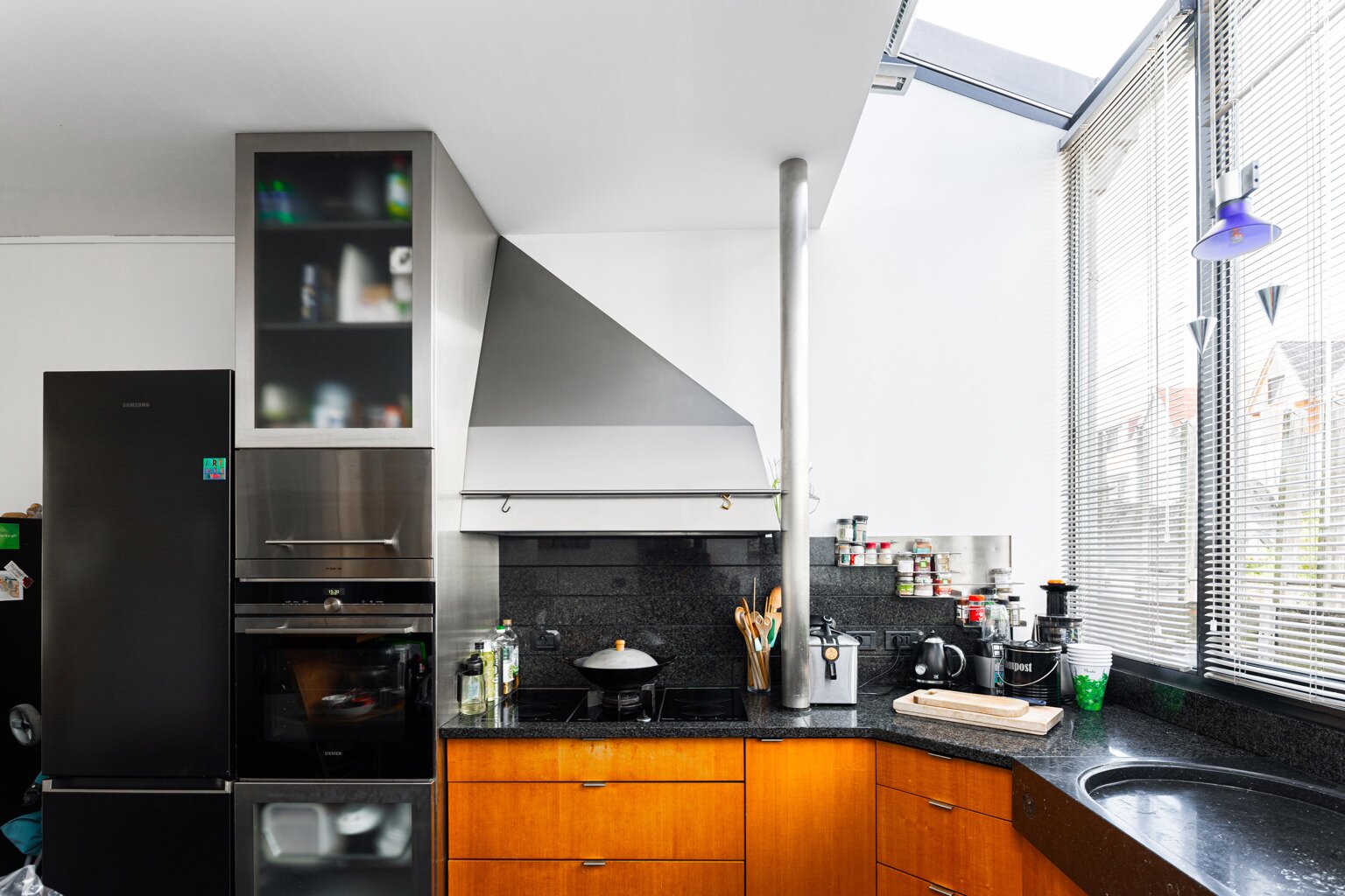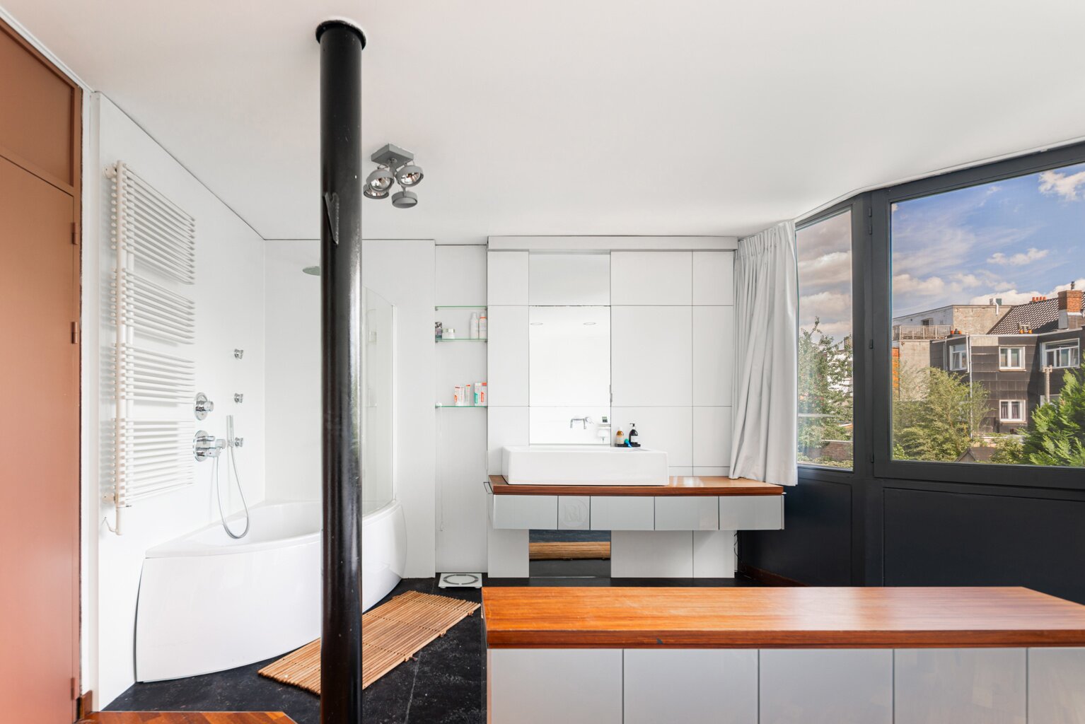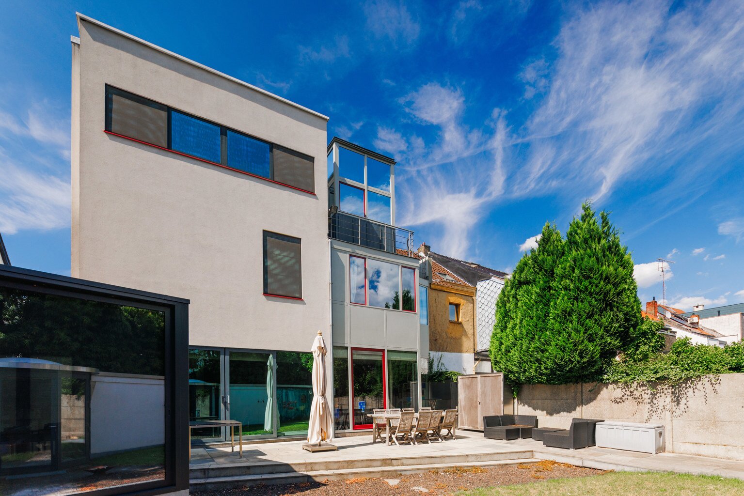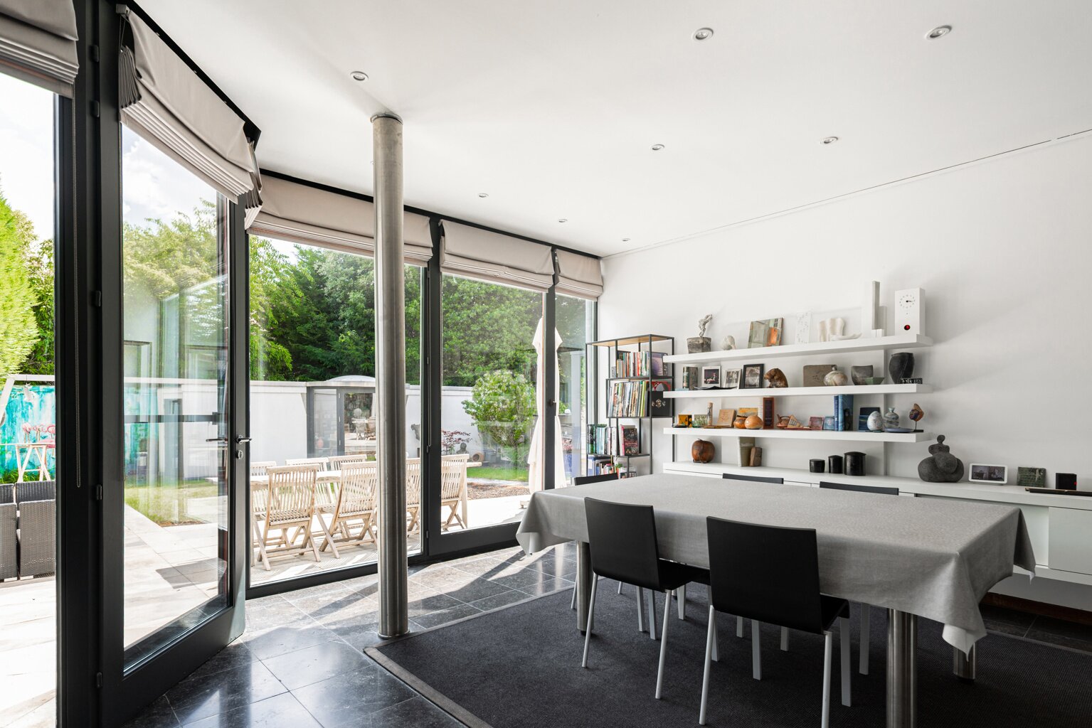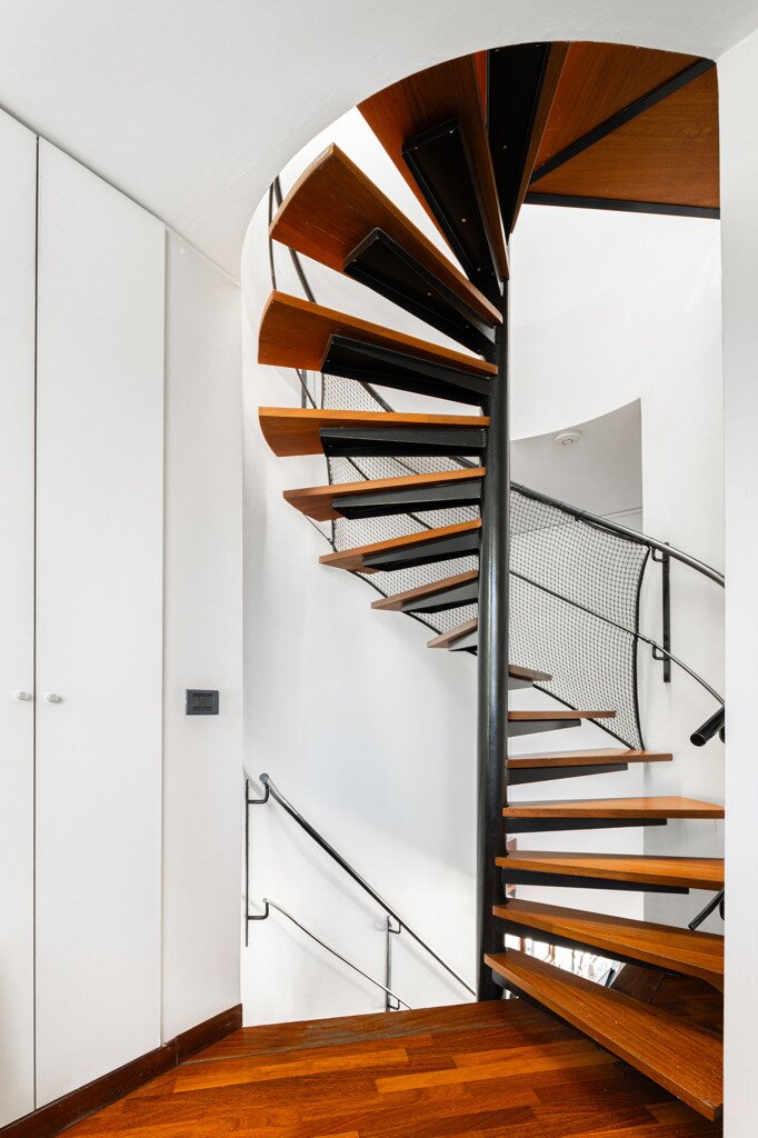 In 1988, the current owners bought the house at no. 64, and six years later they also acquired the neighbouring house, no. 66. With ingenious connections and openings between the two buildings, they transformed their family home into an XL version, with abundant space to combine family life with hobbies and professional activities. A large part of the property is used as the office for the owner’s architecture practice. This immediately explains the playful nod in this home: the pencil-shaped tower, a fun reference to his profession.