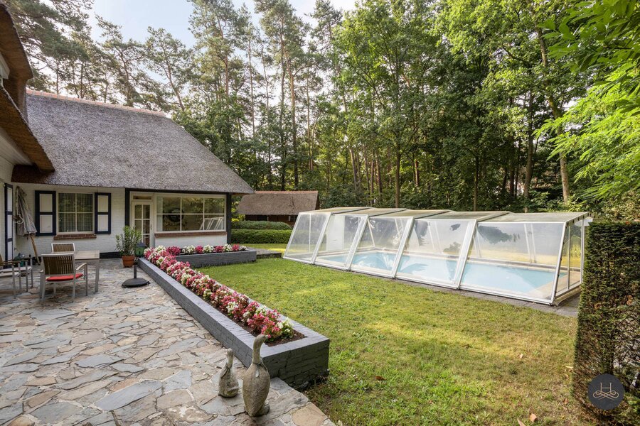 De prachtig aangelegde tuin vormt een absolute troef en beschikt over een zwembad en een ruime garage die ook kan dienen als atelier, hobbyruimte of extra opslag.