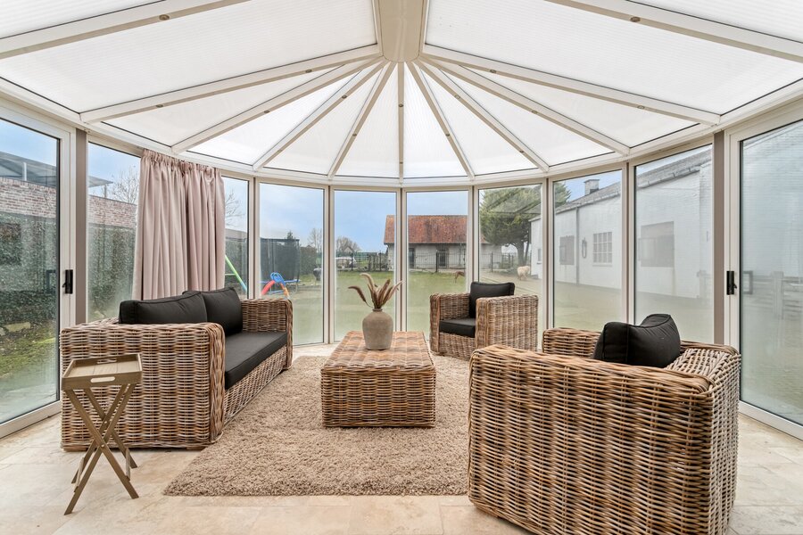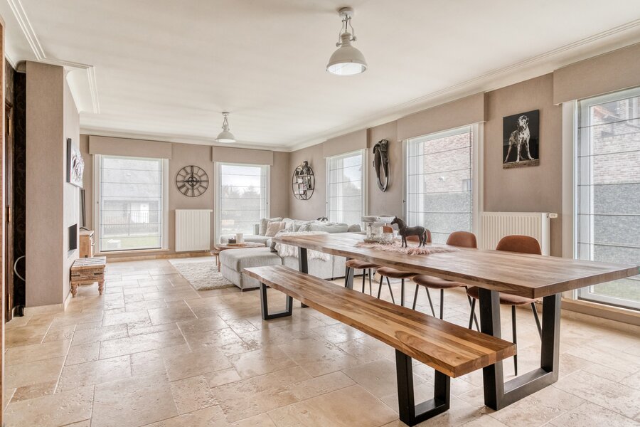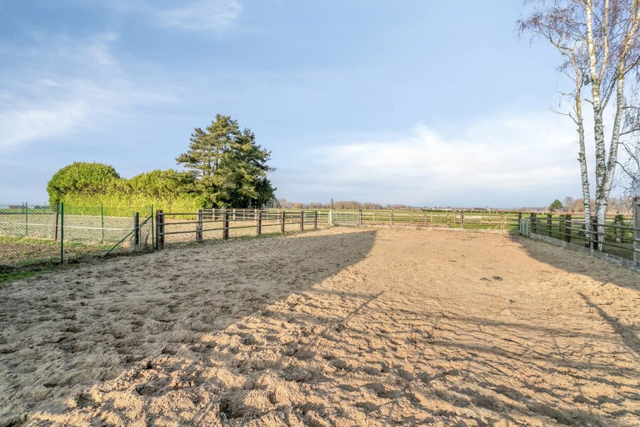 Welcome to Pontweg, in Lede (Oordegem) – This villa is ideal for those who love nature and animals. It is equipped with stables, an outdoor riding arena, and a large plot of land. This villa could potentially be converted into a granny flat, with six bedrooms already available (including two on the ground floor) in the main house and, at the rear, an annex that can be converted according to your own wishes.