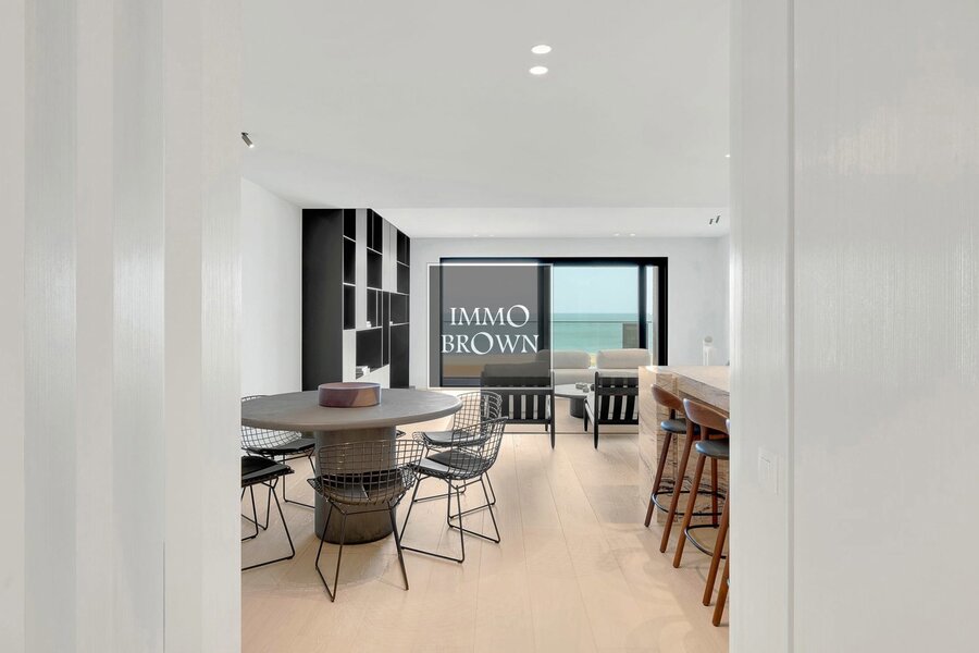 Located in an absolutely prime location in the Zoute, this ready-to-use through lounge flat is located in the prestigious "Lekkerbek" residence. The flat offers a sublime combination of sea view and sunlight: a spacious front terrace with breathtaking views of the sea, the beach and the dunes, and a south-facing rear terrace with an open panoramic view of the hinterland.