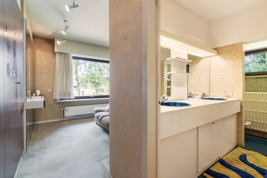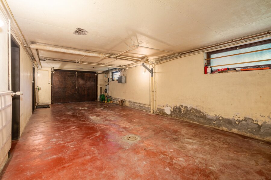 De woning is volledig onderkelderd en opgedeeld in verschillende compartimenten, wat heel wat mogelijkheden biedt op vlak van stockage of inrichting. Ook de garage bevindt zich in het kelderverdiep, met directe toegang tot de woning.