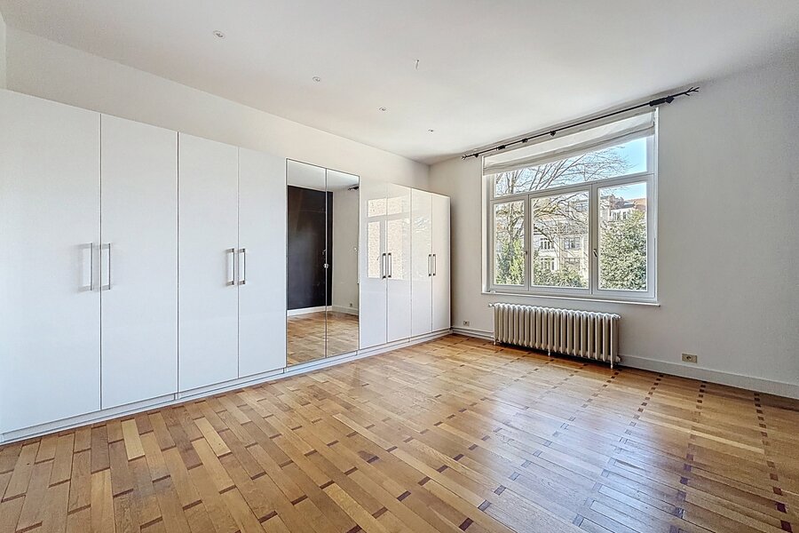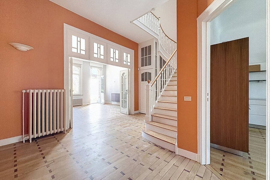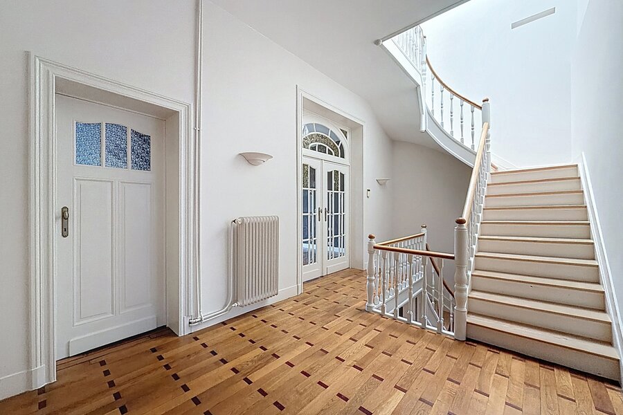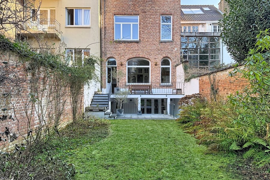 Close to Place Georges Brugmann and the prestigious Avenue Molière, a sumptuous mansion renovated in 2022 with a total area of ± 359 m² built in 1910. It comprises a vast double entrance hall, a bright and spacious living room (± 32.80 m²), a super equipped kitchen (± 22.20 m²), a night hall, 5 beautiful bedrooms (± 23.40 m², ± 23.65 m², ± 12 m², ± 21.40 m² and ± 22 m²), a dressing area, 1 bathroom and shower room and 1 shower room. Beautiful double terrace (approximately 17.50 m² and 36.80 m²) overlooking a lovely city garden (approximately 110 m²). Cellars, laundry room, and garage on the first basement level. High ceilings, double glazing, original parquet flooring, and quality materials. Garden maintenance contract (€215/month). Energy Performance Certificate (EPC) rating E-. Don't miss out! Contact Vaneau Lecobel today!
