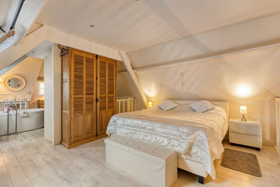 In een polderachtige, groene omgeving bevindt zich deze charmante landelijke woning te Dudzele, volledig en smaakvol gerenoveerd in 2006. Het resultaat is een unieke combinatie van authentieke materialen en hedendaagse luxe. Via de inkomhal met gastentoilet bereikt u de open leefkeuken met eetruimte, die naadloos overgaat in de ruime woonkamer met massief parket, open haard en hoge plafonds. Op het gelijkvloers bevindt zich tevens een multifunctionele kamer met inloopdouche. De volledige bovenverdieping doet dienst als master bedroom met eigen badkamer, ligbad, ingemaakte kasten en toilet. De woning biedt bovendien uitbreidingsmogelijkheden. Het panoramische uitzicht op de prachtig aangelegde tuin met zwembad en zonneterras maakt van elke dag een vakantiegevoel. Het perceel van ca. 3.500 m² omvat verder een oprit, carport, tuinhuis en opbergruimte. Dit is wonen in pure rust en luxe, omringd door natuur.