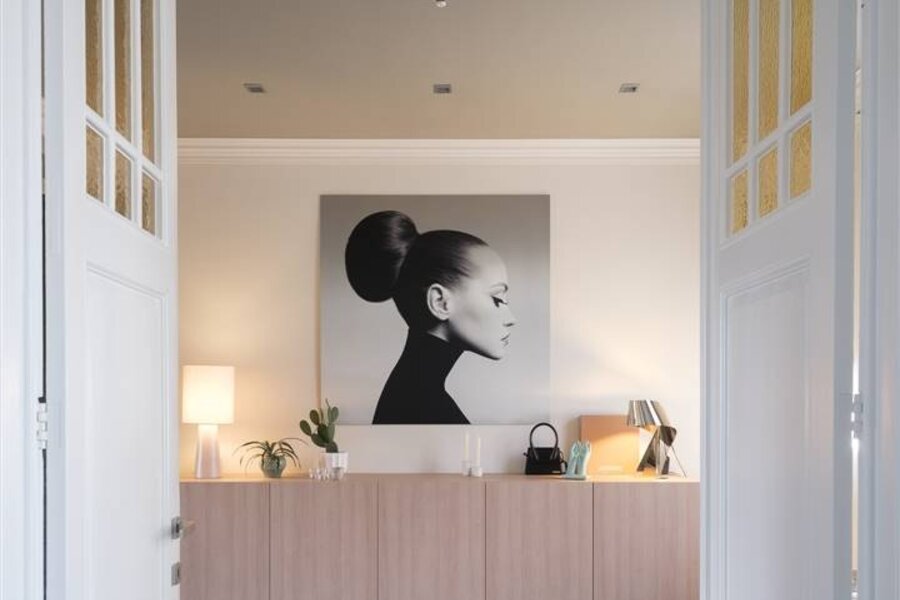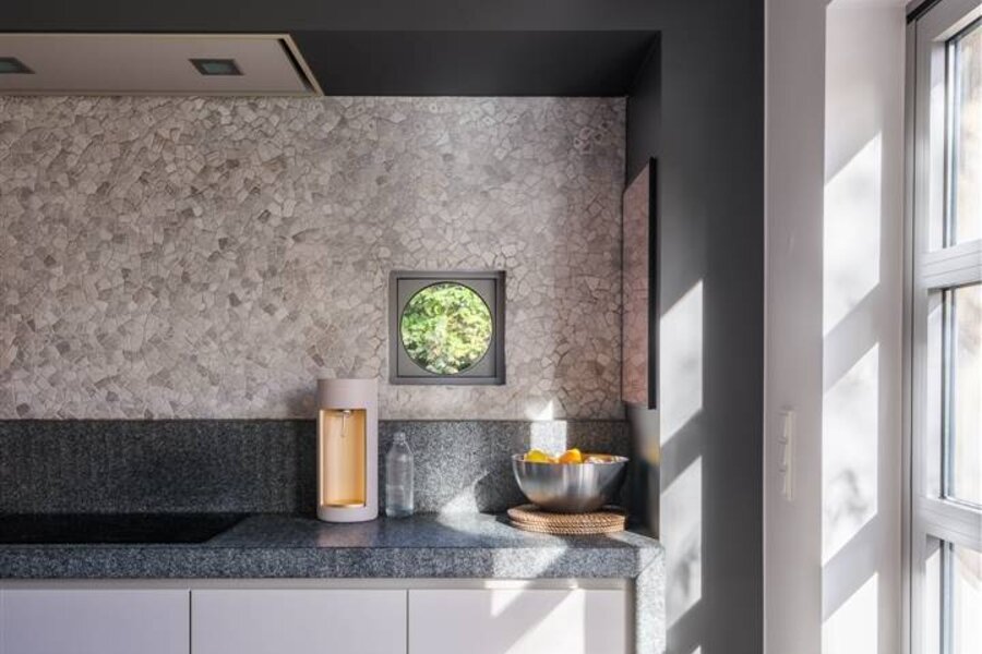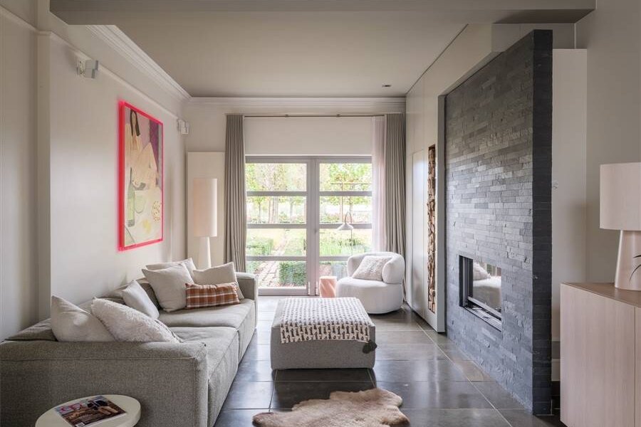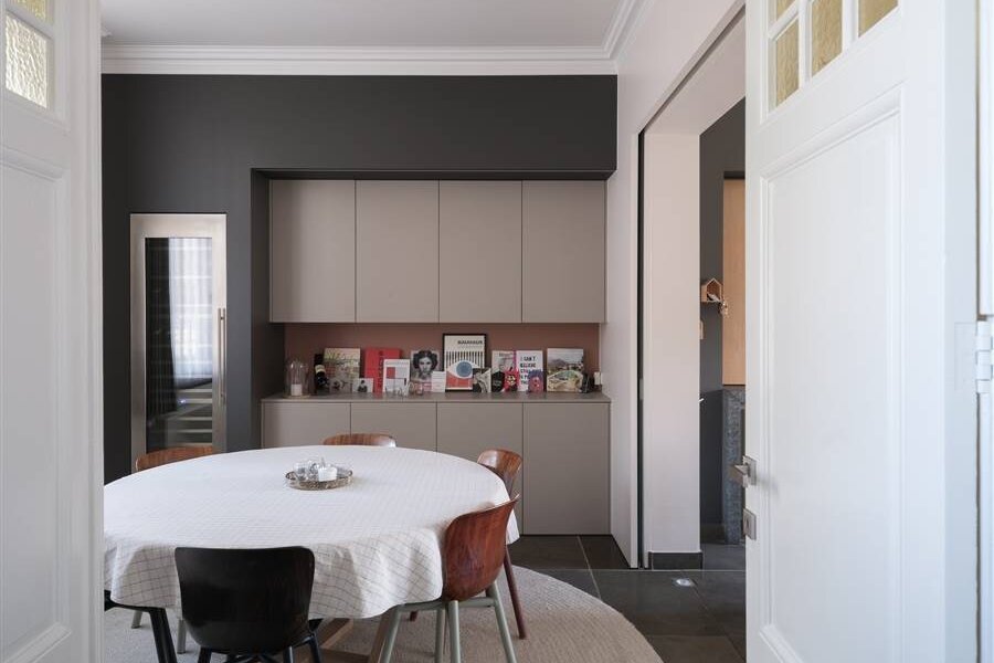 Achter de karaktervolle gevel schuilt een eigentijdse woning met EPC-label B (136 kWh/m²), waar klasse en comfort samenkomen. De ruime inkomhal met originele deuren leidt naar een lichtrijke leefruimte met aan de ene zijde een moderne, volledig uitgeruste keuken met eetruimte en tuinzicht, en aan de andere kant een gezellige living met overvloedig daglicht.