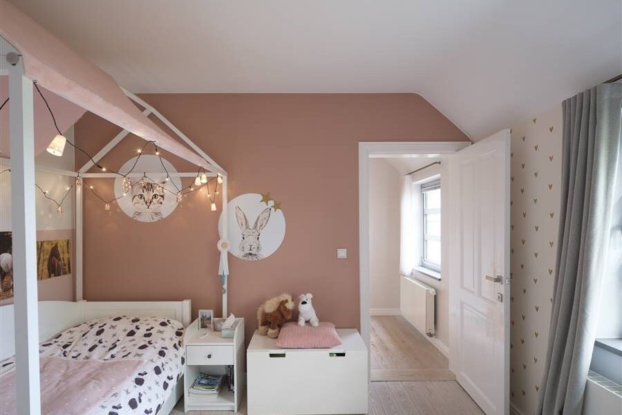 Op de eerste verdieping bevinden zich drie ruime slaapkamers, een dressing, een rustgevende badkamer en een apart waslokaal. De zolderverdieping is ingericht als slaapkamer/bureau en biedt potentieel voor een extra kamer of tweede badkamer.