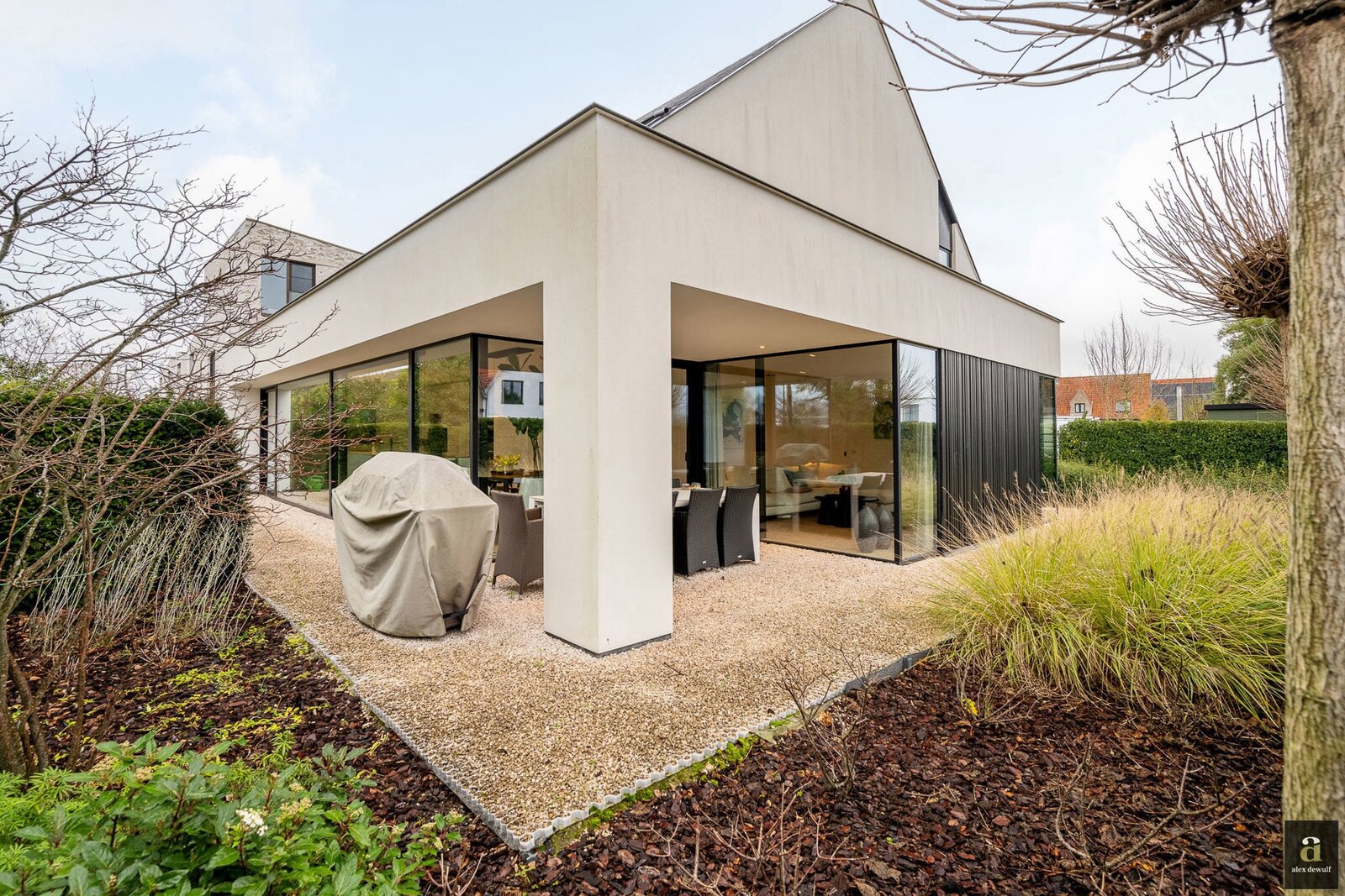 Contemporary, recently built villa with sunny garden and terraces, quietly located in a residential area within walking distance of the centre of Knokke.