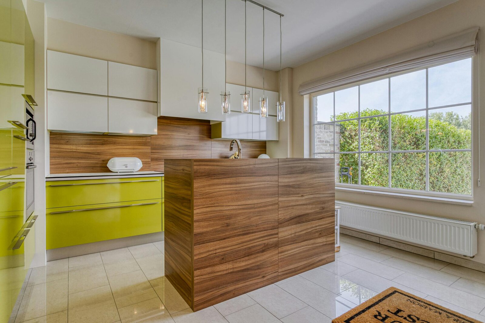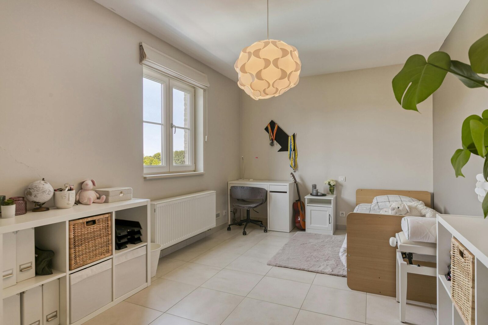 Entrance hall with separate toilet - bright living room with garden view - open and fully equipped kitchen - storage room with built-in cupboards and shower - basement