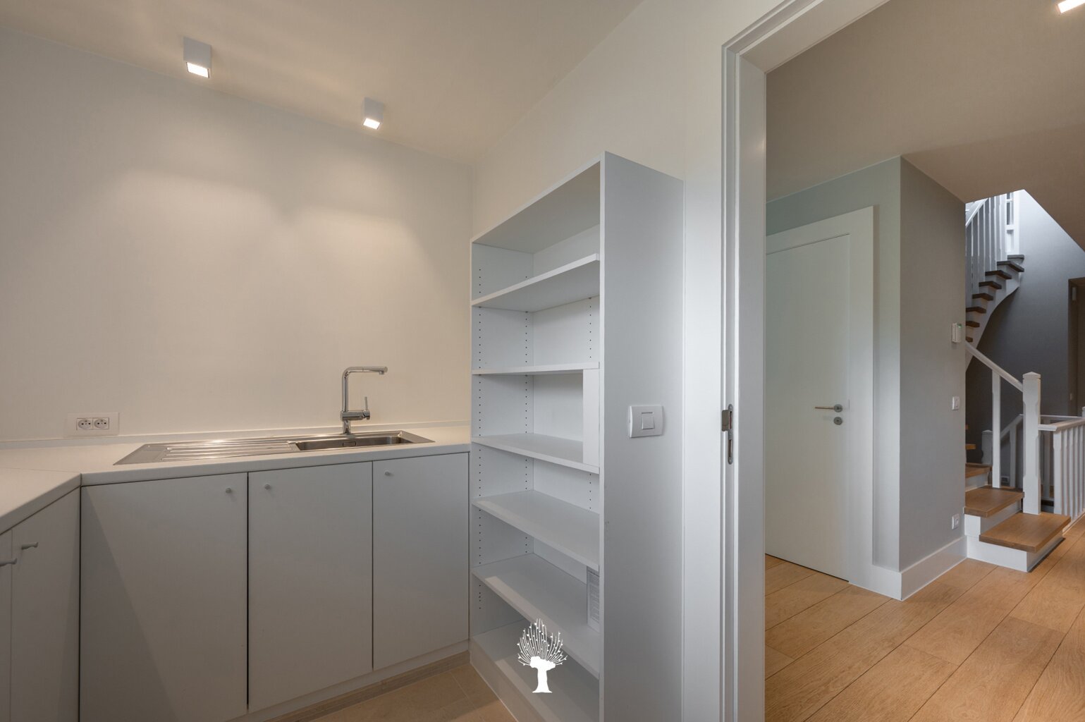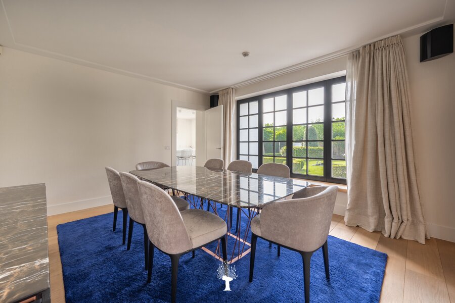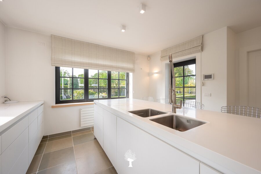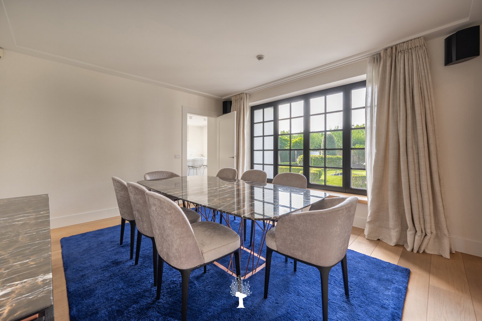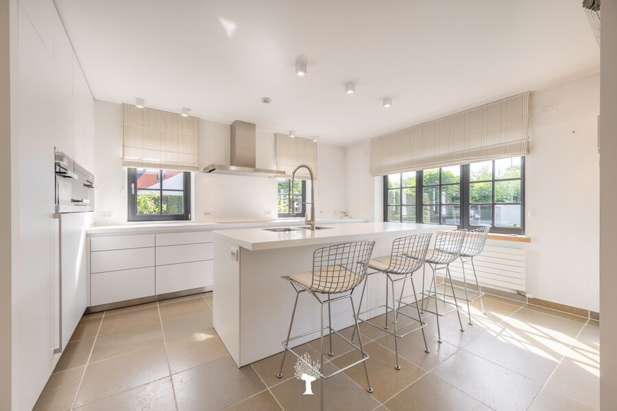 Superbe villa de construction récente, agréablement située aux abords du "Royal Zoute Golf Club". Composition: entrée avec vestiaire et toilette. Vaste séjour, finition chêne, avec feu ouvert classique. Salle à manger donnant sur terrasse et jardin magnifique avec étang. Agréable cuisine (Bulthaup - Appareils Miele) entièrement équipée. 1er étage: master bedroom avec dressing et salle de bains avec baignoire, douche, double lavabo et toilette. Deux chambres à coucher bien proportionnées. 1 salle de bains complète. Quatrième chambre avec salle de douche pratique. Salles de bains en marbre blanc de Carrare. Buanderie. Vaste grenier installé comme fitness, possibilité de création d’une cinquième chambre. Cave. Double garage avec porte électronique (automatique). Parking extérieur pour plusieurs voitures. Alarme, protection caméra, arrosage automatique, système domotique, etc… Luxe et raffinement à un swing du golf! Visites volontiers après rendez-vous en nos bureaux.