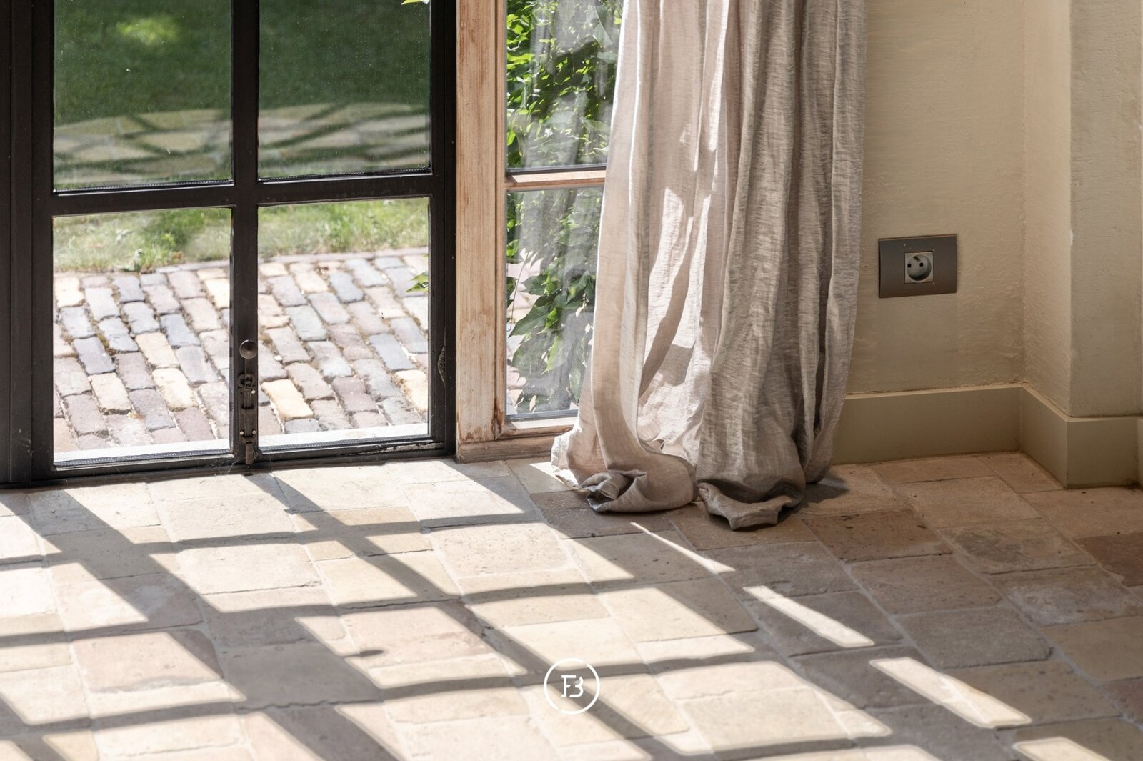 Totslot is dit landhuis voorzien van een wasruimte en wellnessgedeelte met een verwarmd inpandig zwembad, afgewerkt met Franse steen.