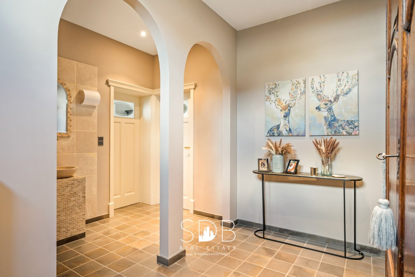 Via de charmante, ruime inkom betreden we de woning. Die enerzijds toegang heeft tot een multifunctionele ruimte en anderzijds toegang heeft tot de woonkamer.