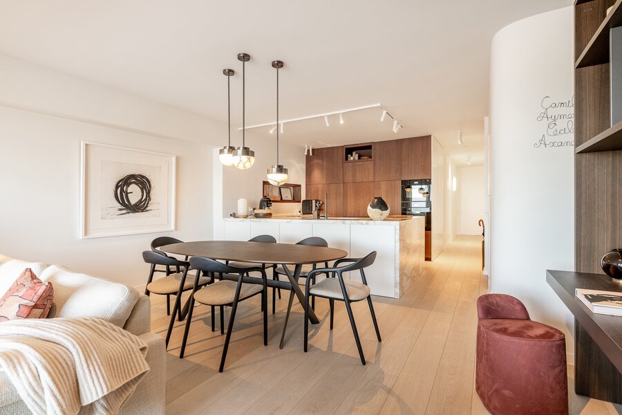 Discover this beautifully renovated apartment with frontal sea views, centrally located in a prime location in Zoute. The apartment is located on the first floor of a well-maintained residence.