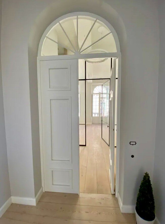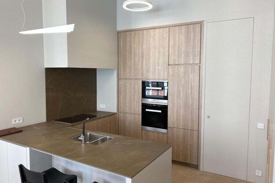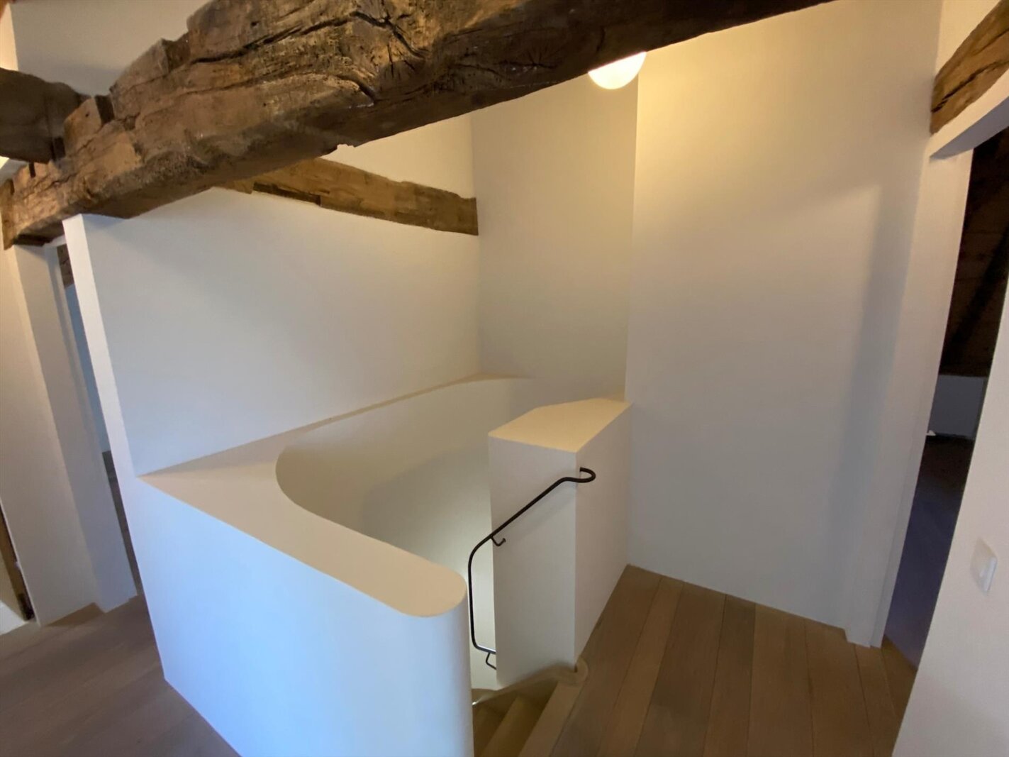 De strakke landelijke architectuur, warme parketvloeren, royale raampartijen en hoge plafonds creëren een uitgesproken gevoel van ruimte en licht. Elk detail werd met zorg geselecteerd, wat resulteert in een harmonieus en tijdloos interieur.