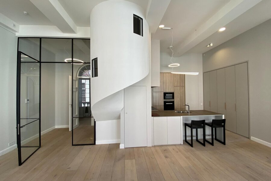 TE HUUR - GENT. In het hart van het historische centrum, op een van de meest gegeerde locaties van Gent, bevindt zich dit uitzonderlijk afgewerkte duplexappartement. Gelegen in het charmante Gewad combineert deze woonst authenticiteit met hedendaags comfort op een verfijnde manier.