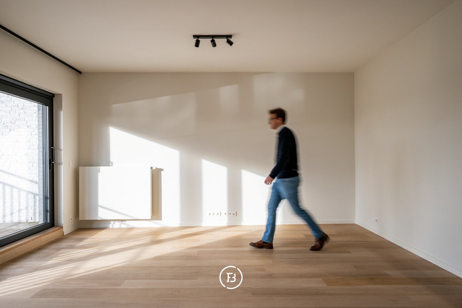 Bij binnenkomst leidt de inkomhal met vestiaire en gastentoilet je naar de aangename leefruimte, waar grote raampartijen zorgen voor een overvloed aan natuurlijk licht en een mooi open zicht. Het zonnige terras sluit naadloos aan en vormt een heerlijke plek om te genieten van rust en buitenlucht. De open keuken is volledig uitgerust en combineert comfort met een verfijnde afwerking. Daarnaast is er een praktische berging aanwezig.