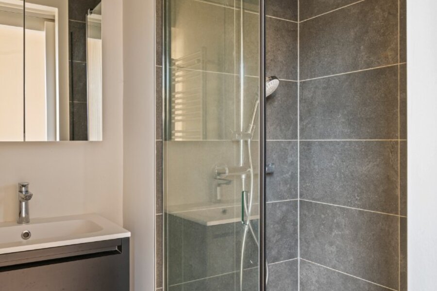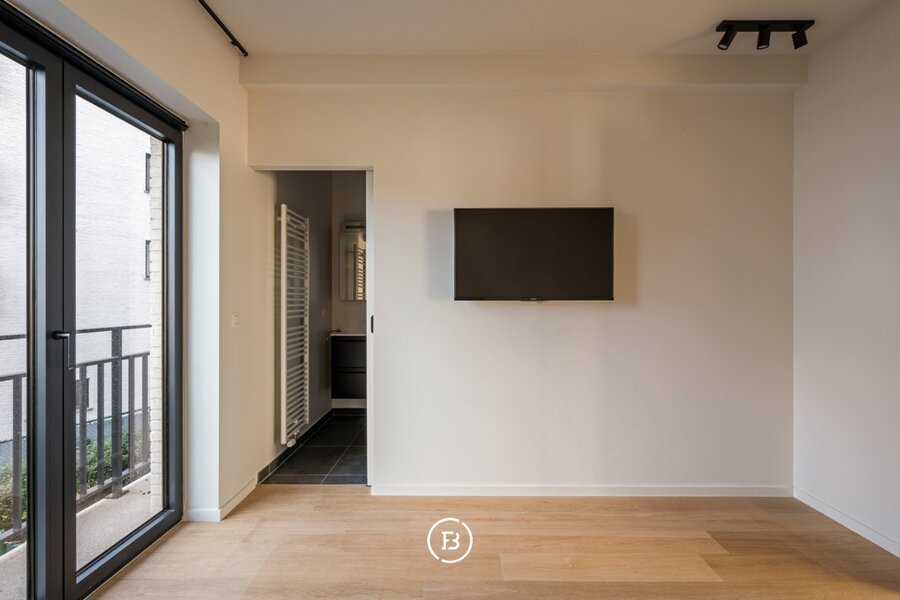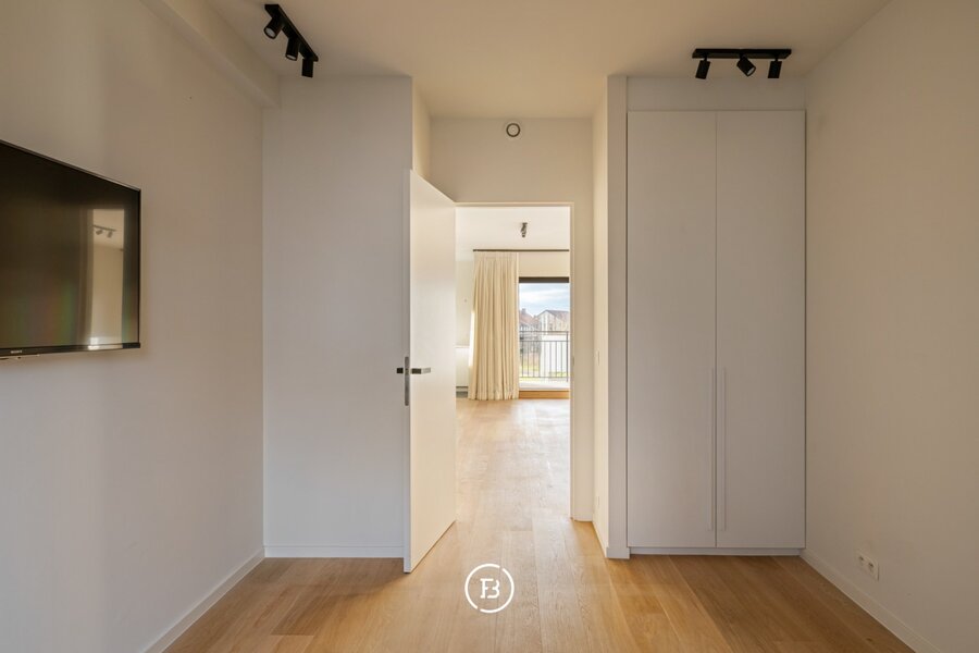 De masterbedroom beschikt over een eigen douchekamer en rechtstreekse toegang tot het terras. De tweede slaapkamer heeft ook een eigen badkamer. Beide kamers zijn voorzien van ruime dressingskasten.