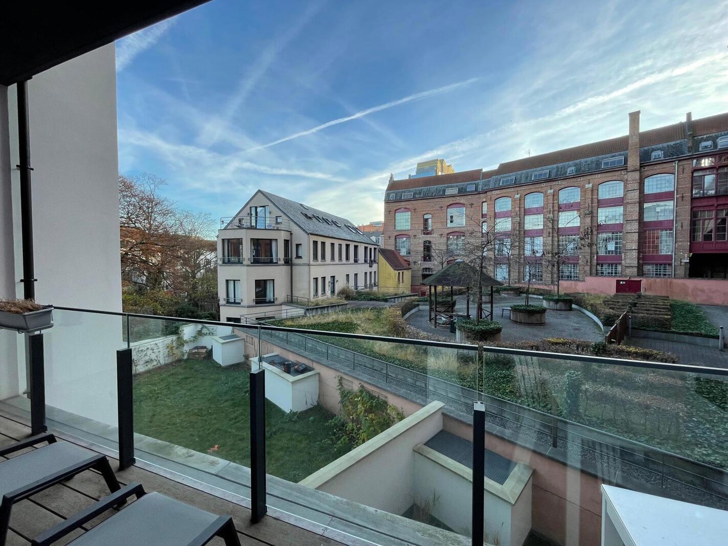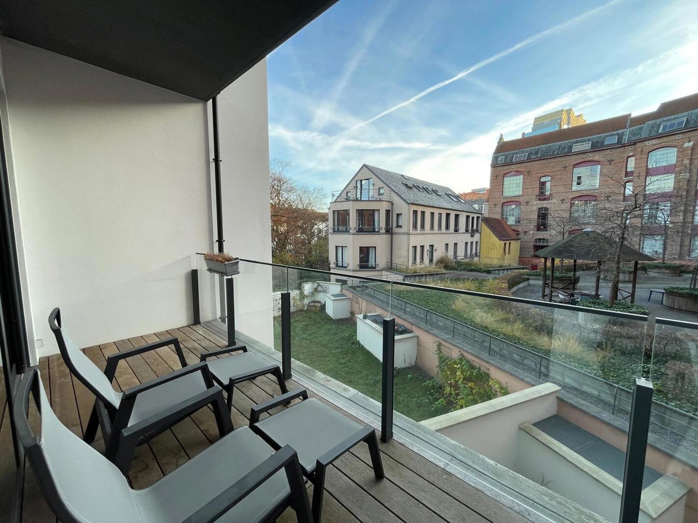 Enjoy tranquillity on the spacious, sunny terrace (south-west facing), which overlooks a serene city garden.