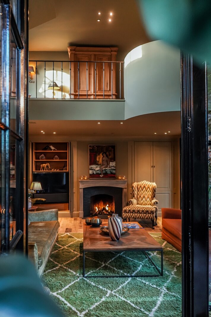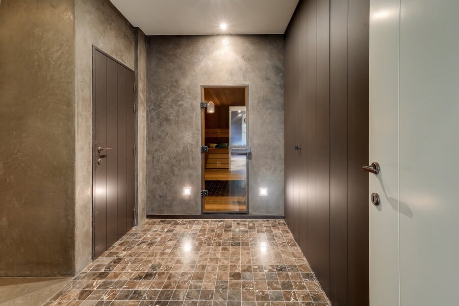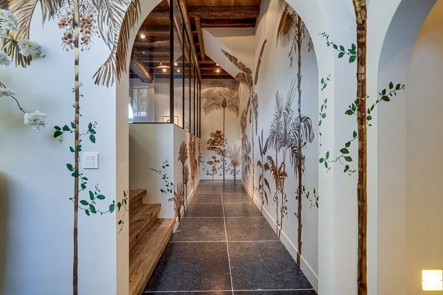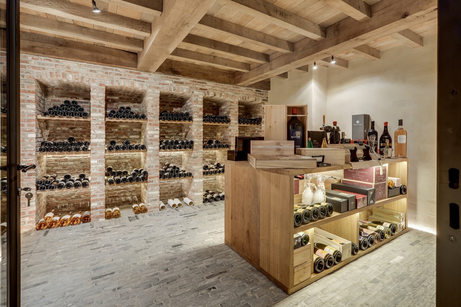 At the center of the villa, a spacious orangery connects the living areas, creating an open and welcoming atmosphere. Adjacent to it is a cozy bar with views of the wine cellar — ideal for relaxed evenings with friends and family.