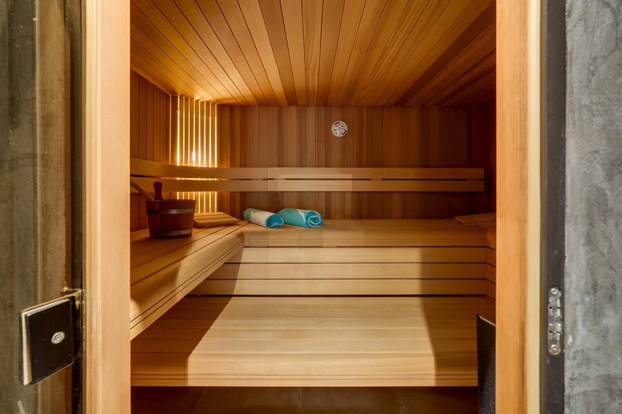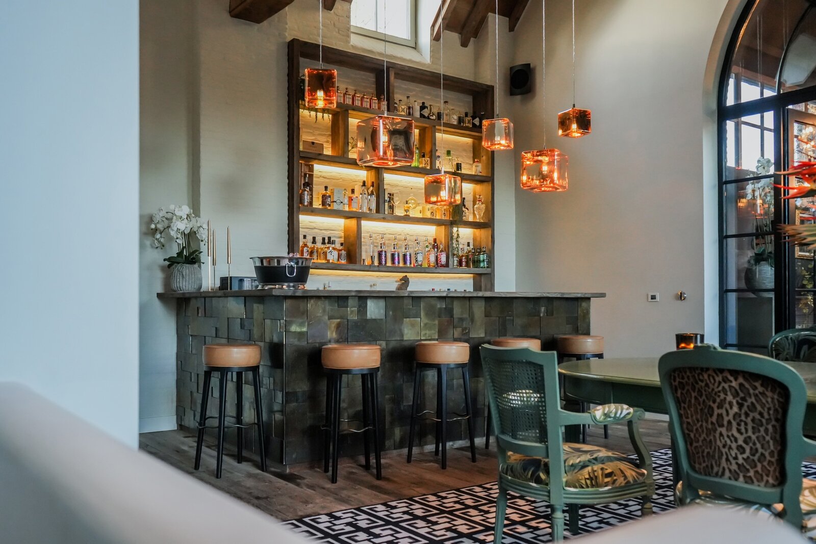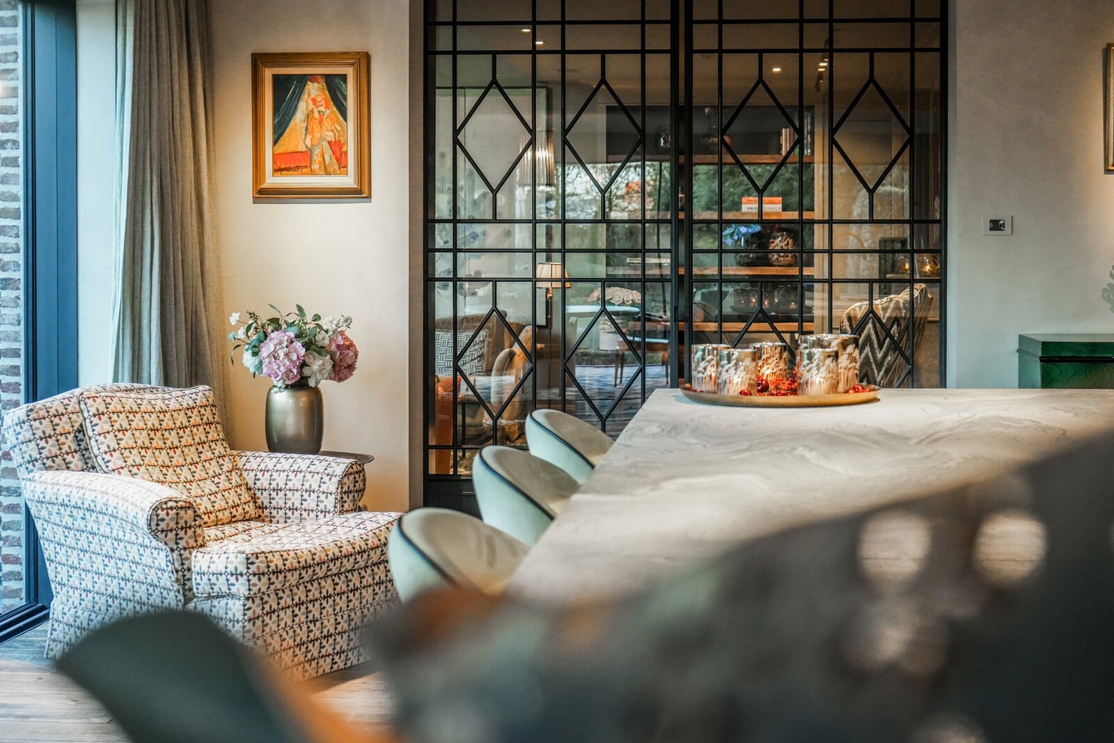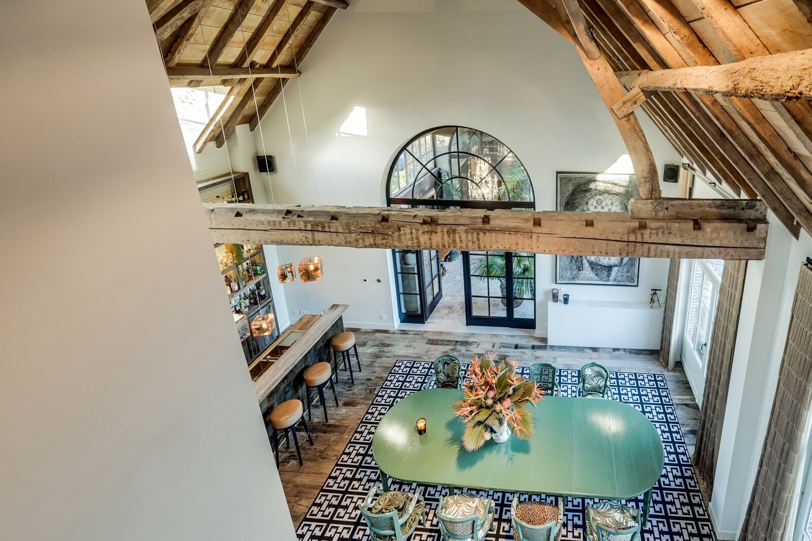 At the center of the villa, a spacious orangery connects the living areas, creating an open and welcoming atmosphere. Adjacent to it is a cozy bar with views of the wine cellar — ideal for relaxed evenings with friends and family.