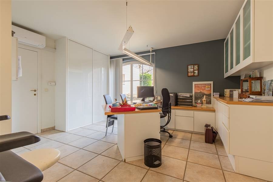 In Willebroek vinden we deze zéér ruime energiezuinige villa met een bewoonbare oppervlakte van 400 m² met een zeer handige aanpalende praktijkruimte (+/- 93 m²), ideaal voor wie op zoek is naar een bijgebouw voor het uitoefenen van een bij of vrij beroep! De villa is afgewerkt met kwalitatieve materialen en is als volgt ingedeeld op het gelijkvloers: ruime inkomhal met gastentoilet, zeer lichtrijke & ruime eet- en leefruimte (82 m²) en de gerenoveerde keuken (4 jaar oud) met aanpalende berging. Vanuit de keuken hebben we toegang tot de kelder. Vanuit de woning hebben we ook rechtstreekse toegang tot de praktijkruimte (welke trouwens ook een eigen privatieve toegang heeft zodat privé en werk perfect gescheiden blijven maar toch toegankelijk). Op het 1ste verdiep vinden we 5 slaapkamers waarvan één master bedroom met ensuite de badkamer (bad/douche/wc), een 2de badkamer en een 3de wc. De woning beschikt tevens over een dubbele inpandige garage. Door zijn zuidoost gerichte tuin geniet u heel de dag van de nodige zonnestralen en tevens ook privacy. Ideaal om te ontspannen na een drukke werkdag of perfect voor het houden van gezellige feestjes met vrienden en familie. Op onze website www.vmv-vastgoed.be vindt u de videotour en attesten terug van deze prachtige woning.