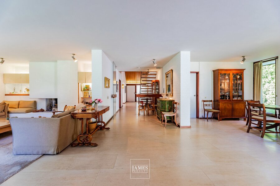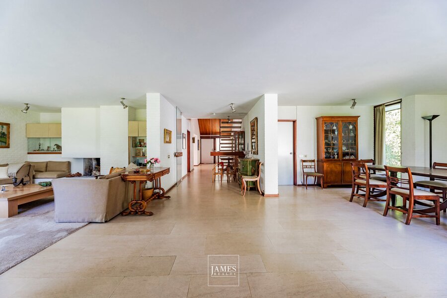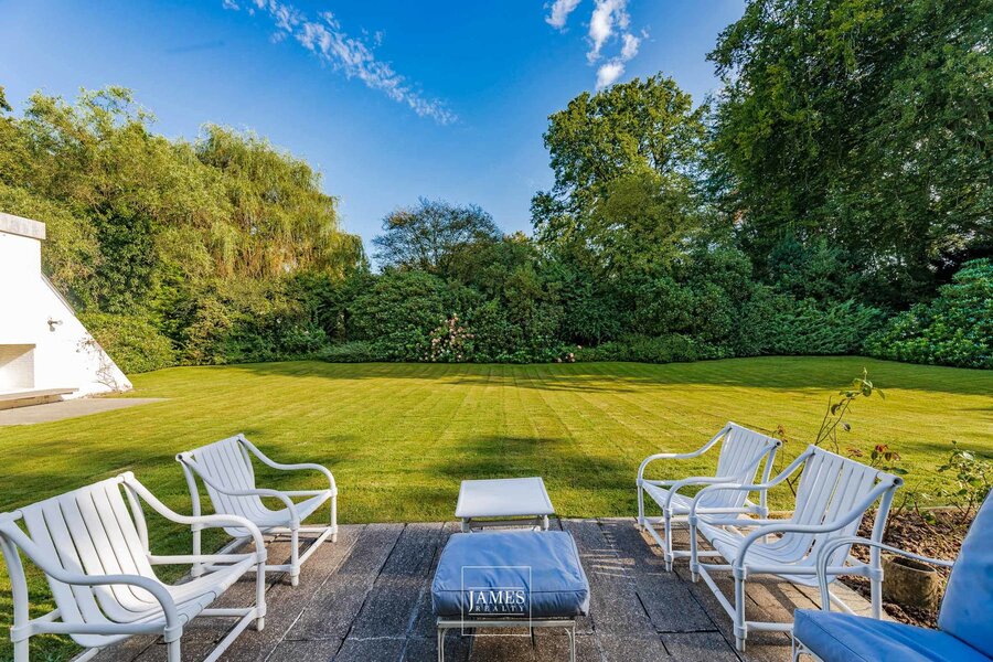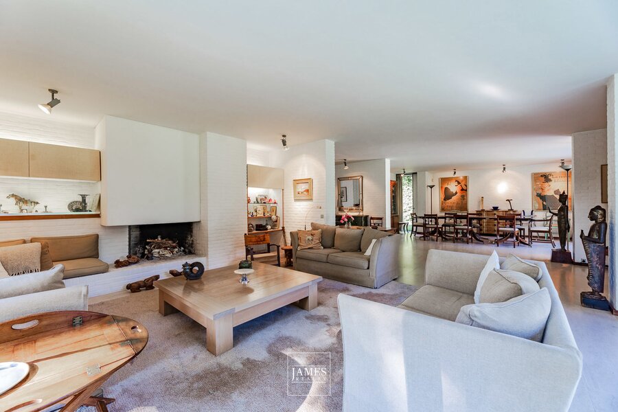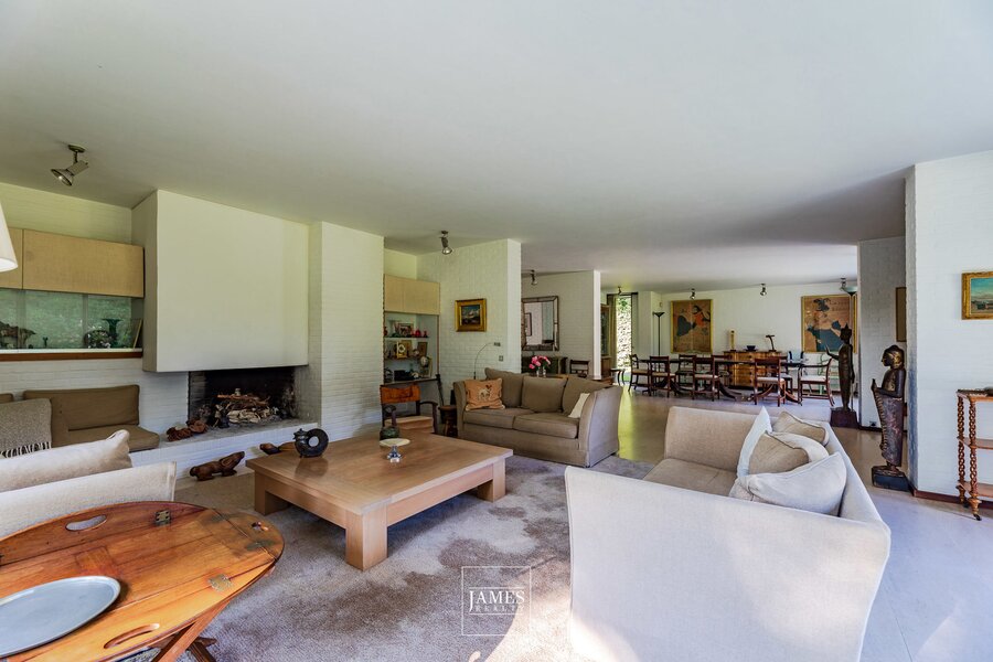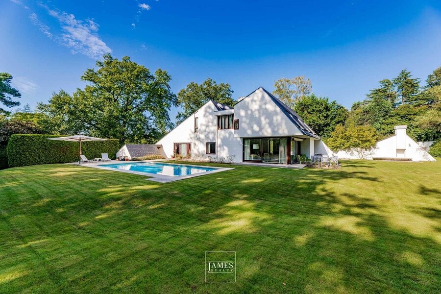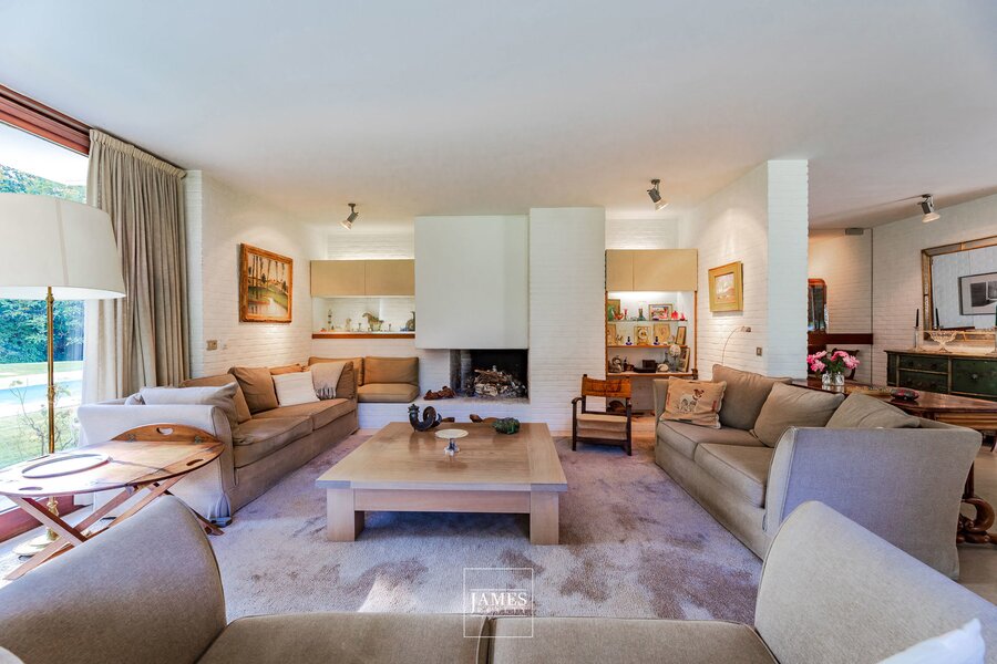 In the quiet residential area of La Drève Pittoresque, we invite you to discover this pretty villa with character, built in the 70s by architect Lucien-Jaques Baucher and situated at the end of a driveway. Ideally situated out of sight on approx. 27 acres of wooded grounds, this family property boasts a south-west-facing garden, terraces and an outdoor swimming pool.