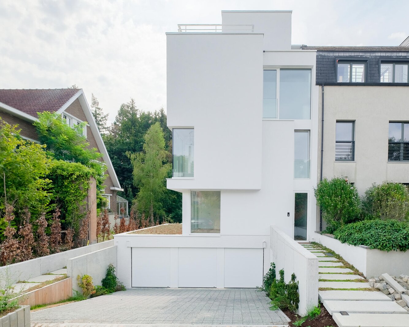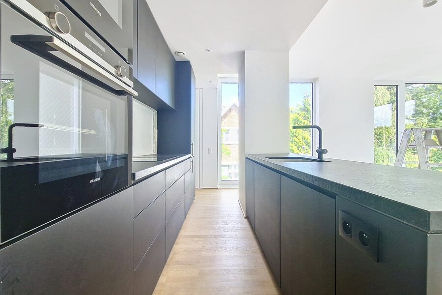 Close to the Lycée Français, the magnificent Château de Papenkasteel estate and the Kinsendael nature reserve, Lecobel Vaneau presents this new human-sized project of just three apartments. It offers housing of high architectural quality, whose atypical volumetry offers residents unique and non-standard living spaces, corner windows, large terrace for each apartment. The many public transport (tram, bus, Vill'o) nearby offer easy access to other districts and towns. The project offers three accommodations: a duplex on the ground floor of ± 168 m² with 3 bedrooms with garden of ± 227 m² and terrace, an apartment of ± 84 m² with 2 bedrooms with terrace of ± 10 m² and a duplex penthouse of ± 130 m² of 3 bedrooms with 3 beautiful terraces. Each accommodation is unique in its configuration. The finishes draw their inspiration from modernist architecture while remaining sober and contemporary. The basements consist of cellars (included in the price) and 3 garages (compulsory purchase of 1 per unit +40,000 €). Underfloor heating via heat pump, double flow ventilation, solar panels, electric and autonomous solar blind on the triple-glazed windows, solid oak parquet flooring... Excellent thermal and acoustic insulation. PEB A- /B+. Sale under the VAT regime. Contact us for more information on the project at 02/669.21.70 or at promotion@lecobel.be.
