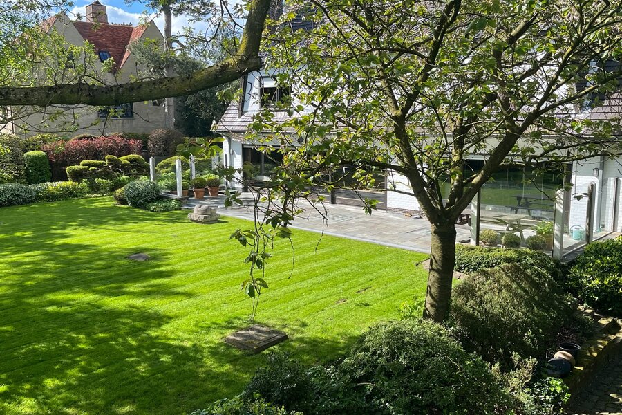 In een uiterst gegeerde en residentiële omgeving, op wandelafstand van de Boslaan, bevindt zich deze alleenstaande villa op een prachtig perceel van ca. 1.700 m², perfect georiënteerd en gelegen in een doodlopende straat die absolute rust en privacy garandeert. De eigendom biedt meerdere mogelijkheden naar renovatieproject of nieuwbouw. Indeling: Bij het binnenkomen wordt u verwelkomd in een ruime inkomhal met vestiaire en gastentoilet. De lichtrijke leefruimte met gezellige zithoek en eetplaats geeft uit op de zonnige, zuidgerichte terrassen en de schitterende tuin. Aansluitend bevindt zich een volledig uitgeruste keuken. Verder beschikt het gelijkvloers over een royale bureau- of tv-ruimte met een mooi zicht op de tuin langs beide zijden, evenals een extra afzonderlijk bureel. Op de eerste verdieping bevinden zich vier volwaardige slaapkamers en drie badkamers, een apart toilet en een praktische berging. De tweede verdieping : ruime zolderkamer die zich perfect leent als polyvalente ruimte, hobbykamer of kan worden ingericht als twee extra slaapkamers. De woning is volledig onderkelderd en beschikt over een ruime inpandige garage met plaats voor maar liefst vier wagens. Meerdere wagens op de oprit. De magnifieke tuin met ideale oriëntatie vormt een oase van rust waar u in alle privacy kunt genieten van zon en natuur.